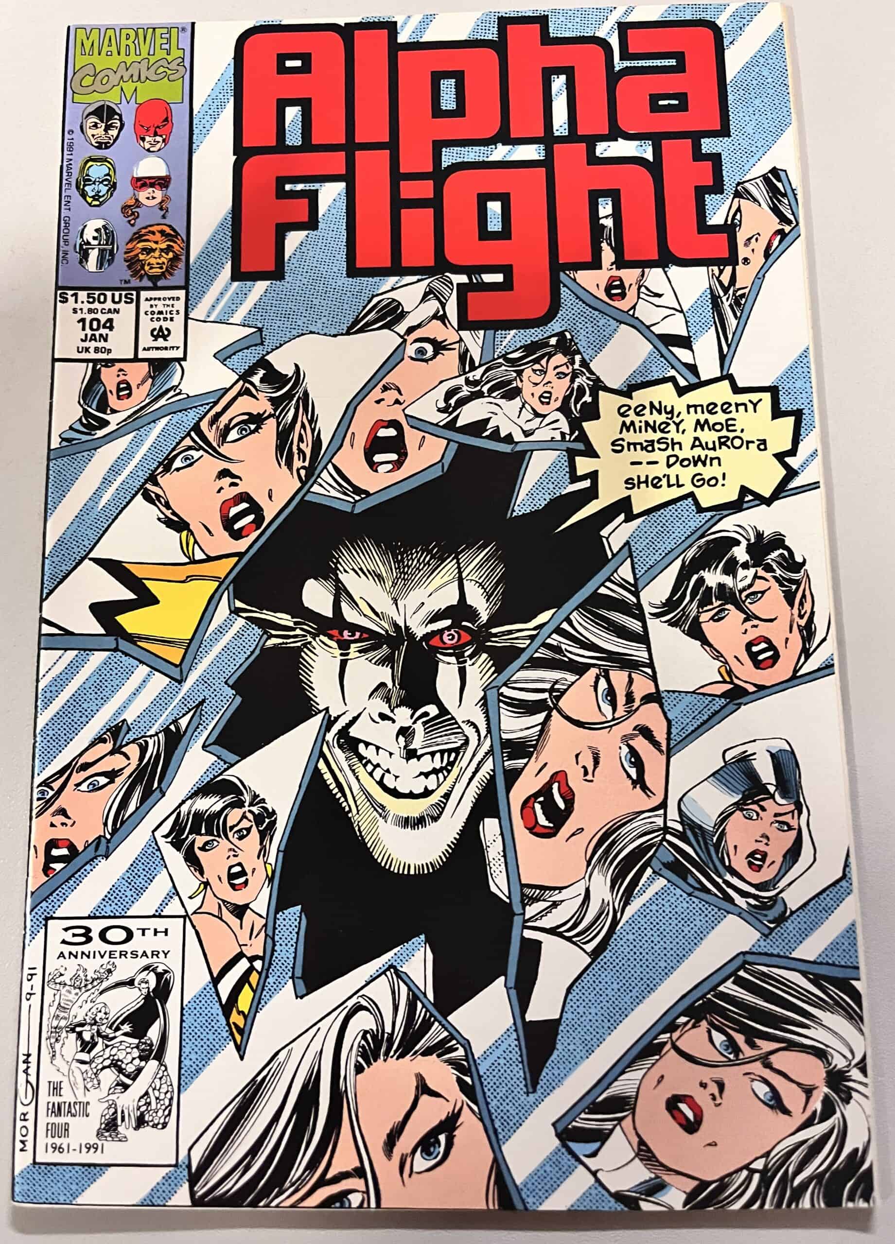 Headlok messes with Aurora’s head and causes her to revert to a split personality with Jeanne-Marie. Aurora defeats him and rejoins Alpha Flight. Jeffries and Lil announce they are leaving the team to get married. The Alphans get new costumes.