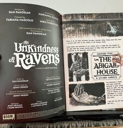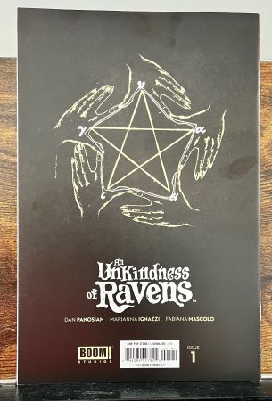 Deze strip An Unkindness of Ravens #1 is van hoge kwaliteit. Bijna nieuw. Schrijver: Dan Panosian Tekenaar: Marianna Ignazzi Jaar: 2020 Niet alle heksen werden verbrand tijdens de heksenprocessen van Salem – en degenen die het overleefden, deden dat samen. Nu, generaties later, beschermen hun nakomelingen de eeuwenoude geheimen die aan hen zijn toevertrouwd. Ze noemen zichzelf de Ravens. * Wilma is het nieuwe meisje op school en ze is van plan volledig onopgemerkt te blijven – behalve dat ze een griezelige gelijkenis vertoont met het Raven-lid Waverly. En Waverly is zojuist verdwenen. * Maar de waarheid achter Waverly’s verdwijning zal de hele coven in gevaar brengen – en Wilma zal moeten vertrouwen op een macht waarvan ze niet wist dat ze die had als ze haar nieuwe vrienden wil redden. * Schrijver Dan Panosian (Slots) en kunstenaar Marianna Ignazzi presenteren een bovennatuurlijk mysterie, perfect voor fans van The Marked en Sabrina the Teenage Witch (2019).