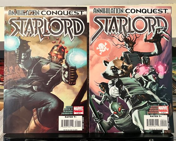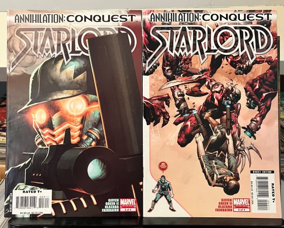 Deze Annihilation Conquest Starlord #1 t/m 4 complete series zijn allemaal in uitstekende staat, zeer goed/bijna nieuw. Schrijver: Keith Giffen Tekenaar: Tom Green II Jaar: 2007 De Kree helpen Star-Lord zich voor te bereiden op een missie tegen de Phalanx-indringers en voorzien hem van een team supermensen die allemaal in Kree-gevangenissen hebben gezeten.