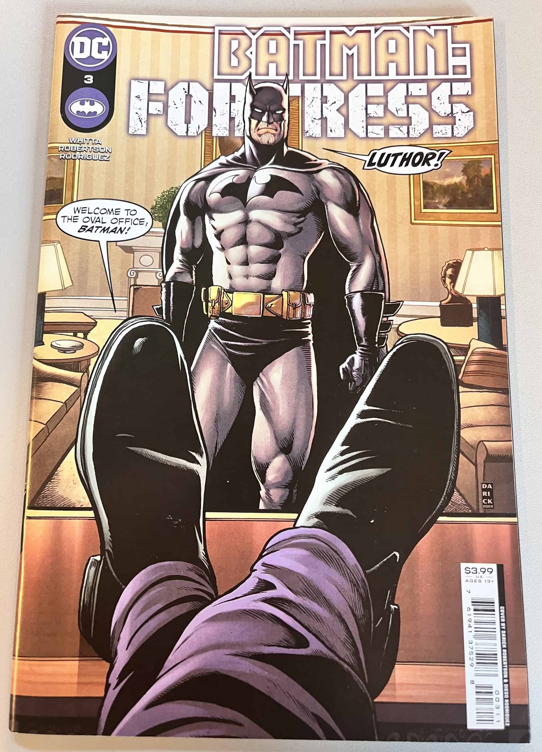 When an unknown alien ship enters Earth’s atmosphere, disrupting global power and communications and plunging the planet into chaos, the world is left wondering…where is Superman when he is needed most? In the mysterious absence of the Last Son of Krypton, Batman must rally the rest of the Justice League to counter the alien threat…but first, he must quell a crime wave on the blacked-out streets of Gotham! Gary Whitta (Rogue One: A Star Wars Story) and Darick Robertson (The Boys) have joined forces to tell a brutal and shocking adventure that will turn everything you think you know about Superman upside down!