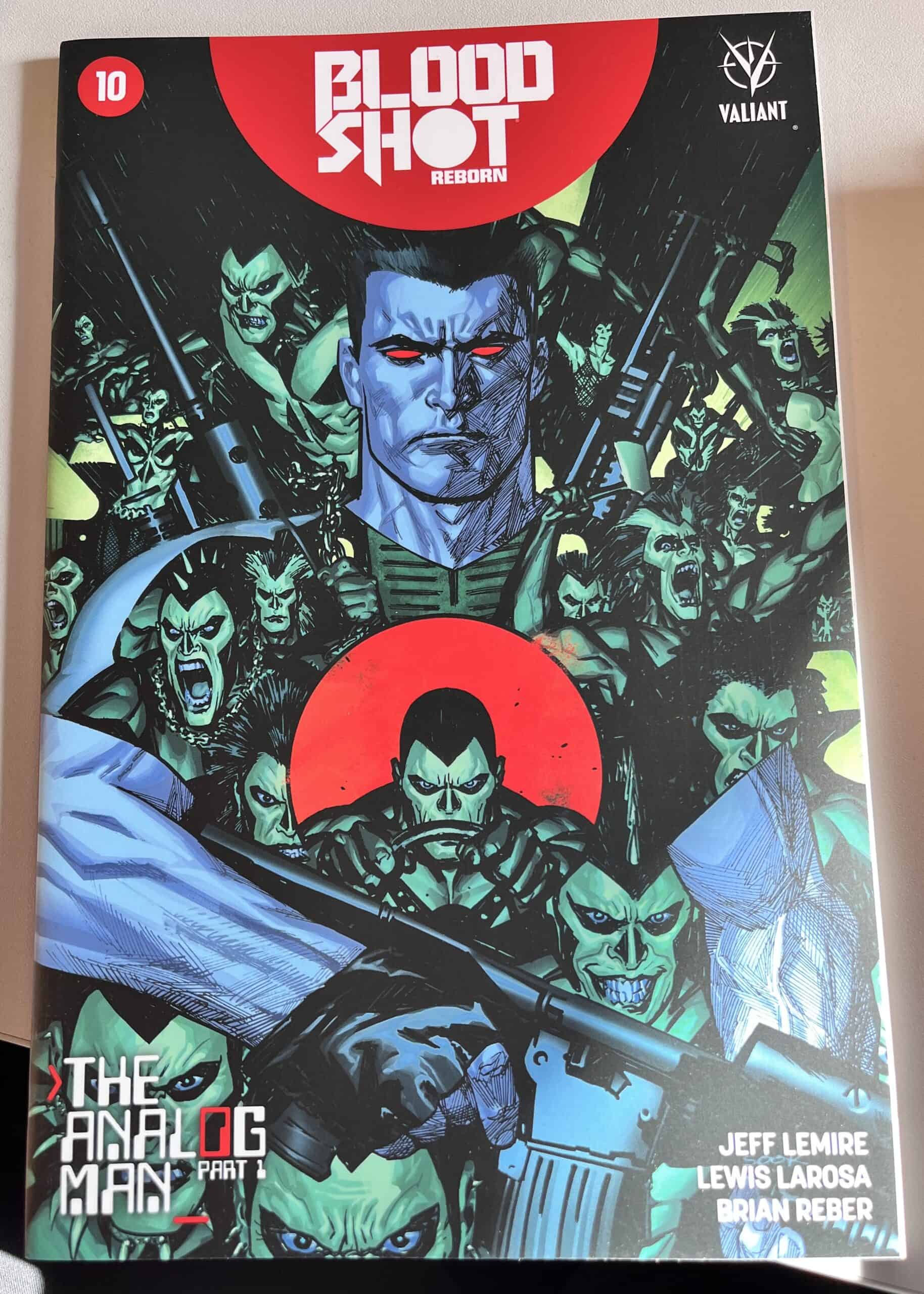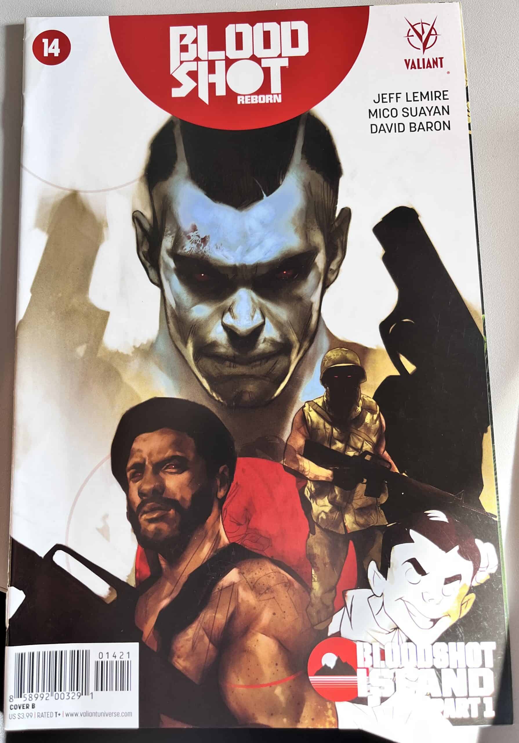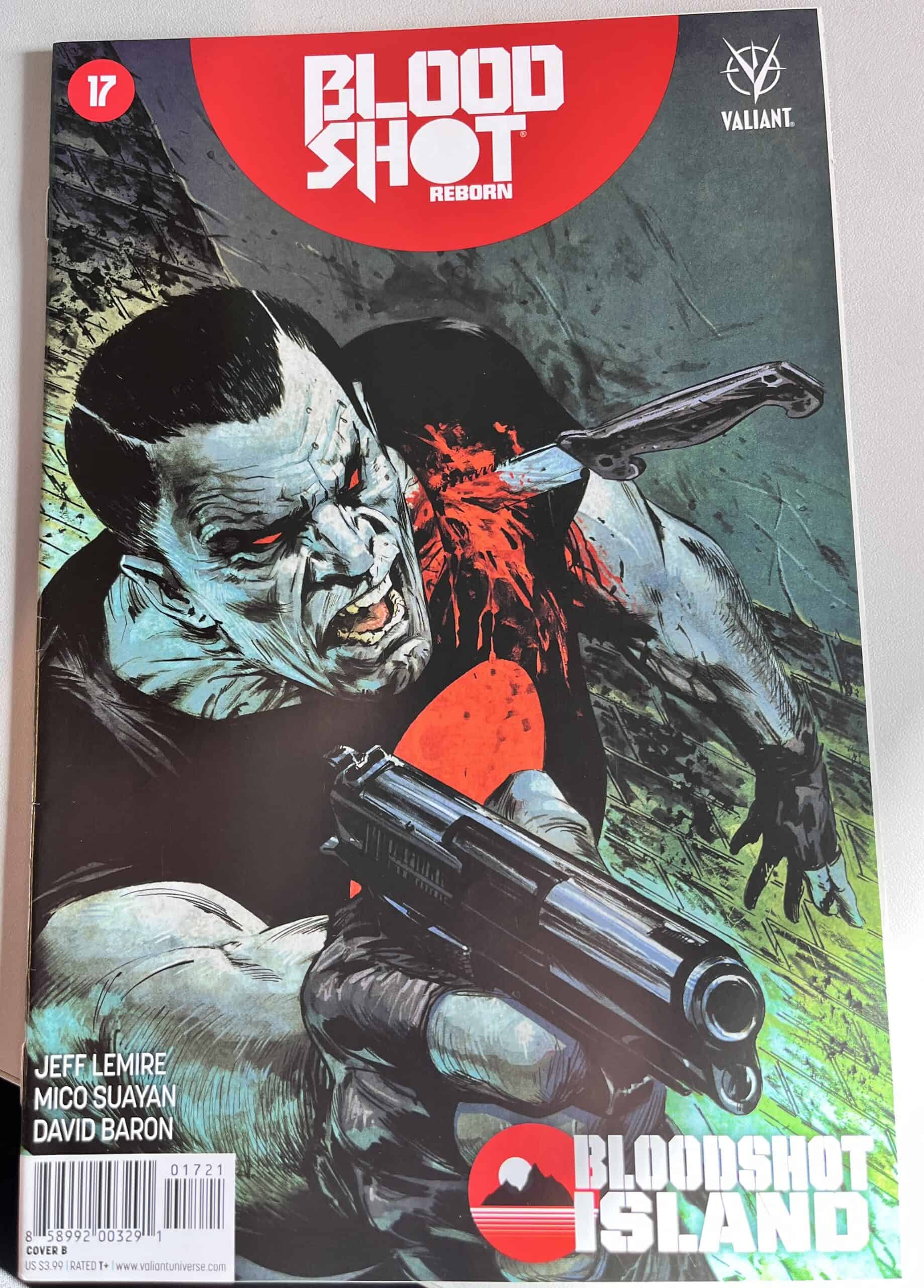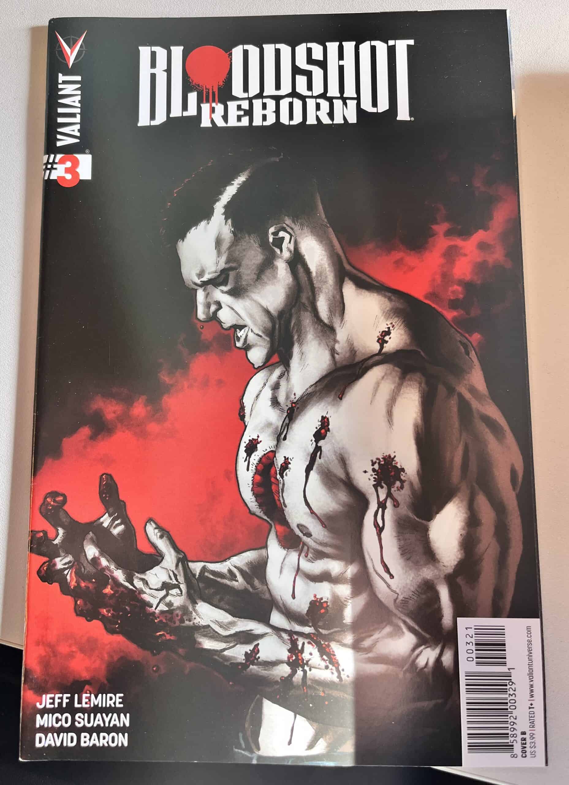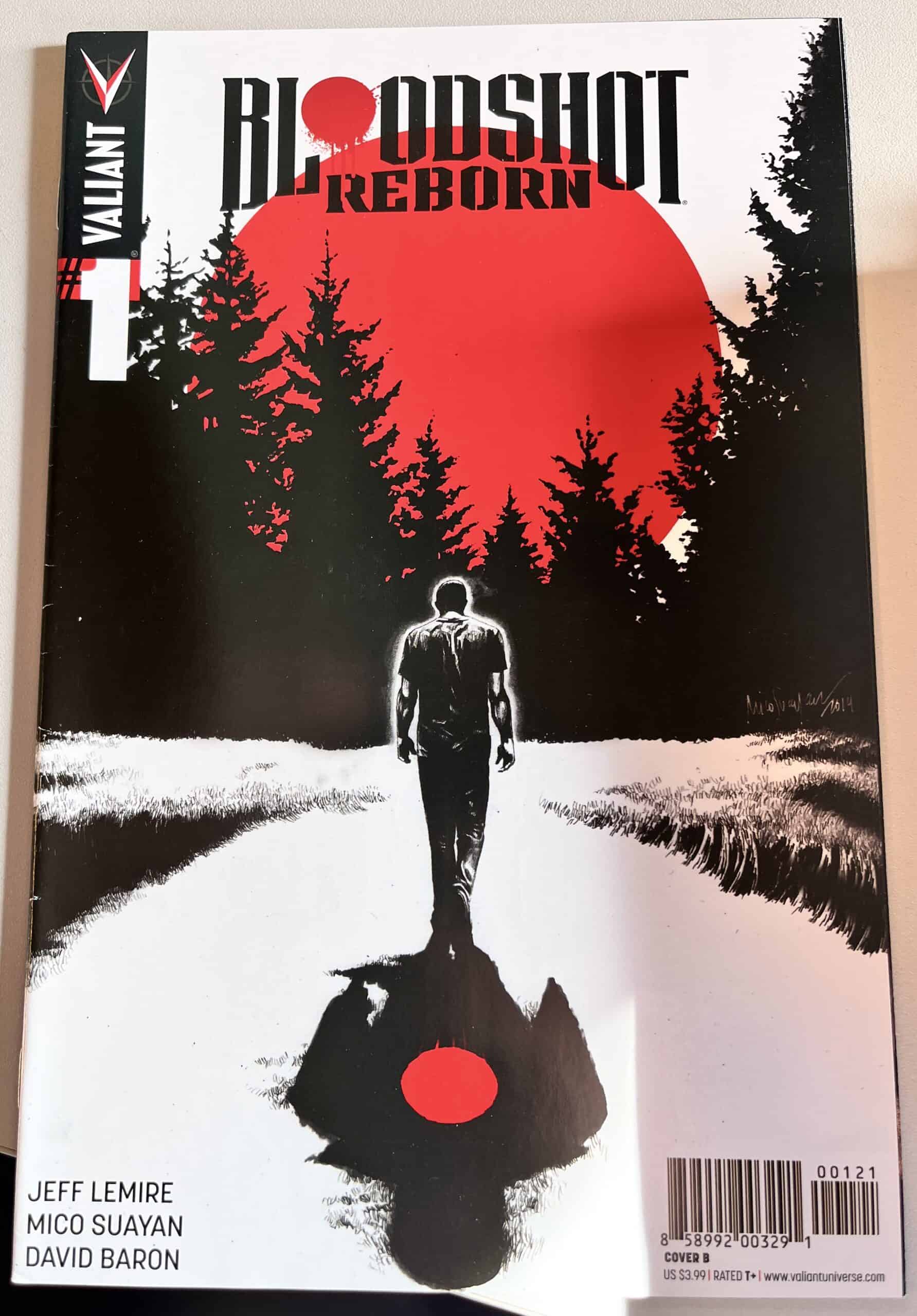 From New York Times best-selling writer Jeff Lemire (THE VALIANT, Green Arrow) and red-hot rising star Mico Suayan (HARBINGER, Moon Knight), VALIANT NEXT delivers an all-new ongoing series for Valiant’s most unrelenting hero! Bloodshot’s nanites made him a nearly unstoppable killing machine. His enhanced strength, speed, endurance, and healing made him the perfect weapon, and he served his masters at Project Rising Spirit – a private contractor trafficking in violence – very well. Now, Bloodshot is a shadow of his former self. He lives in selfimposed exile, reeling from the consequences of his past life and the recent events that nearly drove him mad. But when a rash of shootings by gunmen who appear to look just like Bloodshot begin, his guilt will send him on a mission to stop the killers, even if it means diving headlong into the violence that nearly destroyed him.