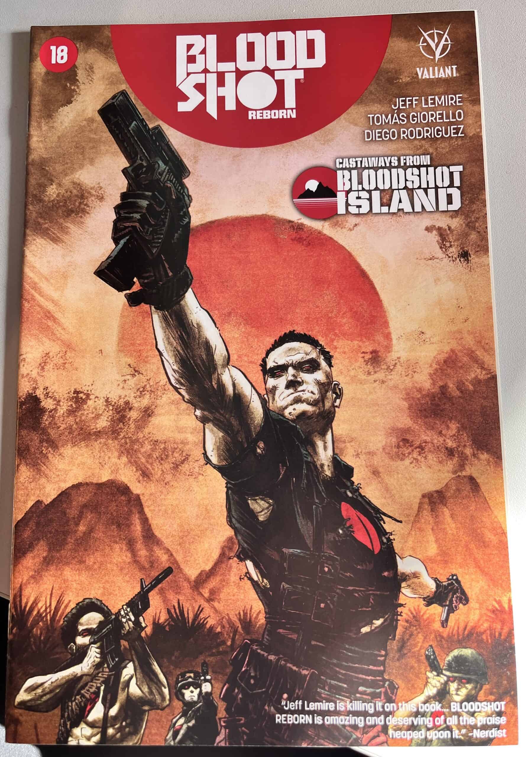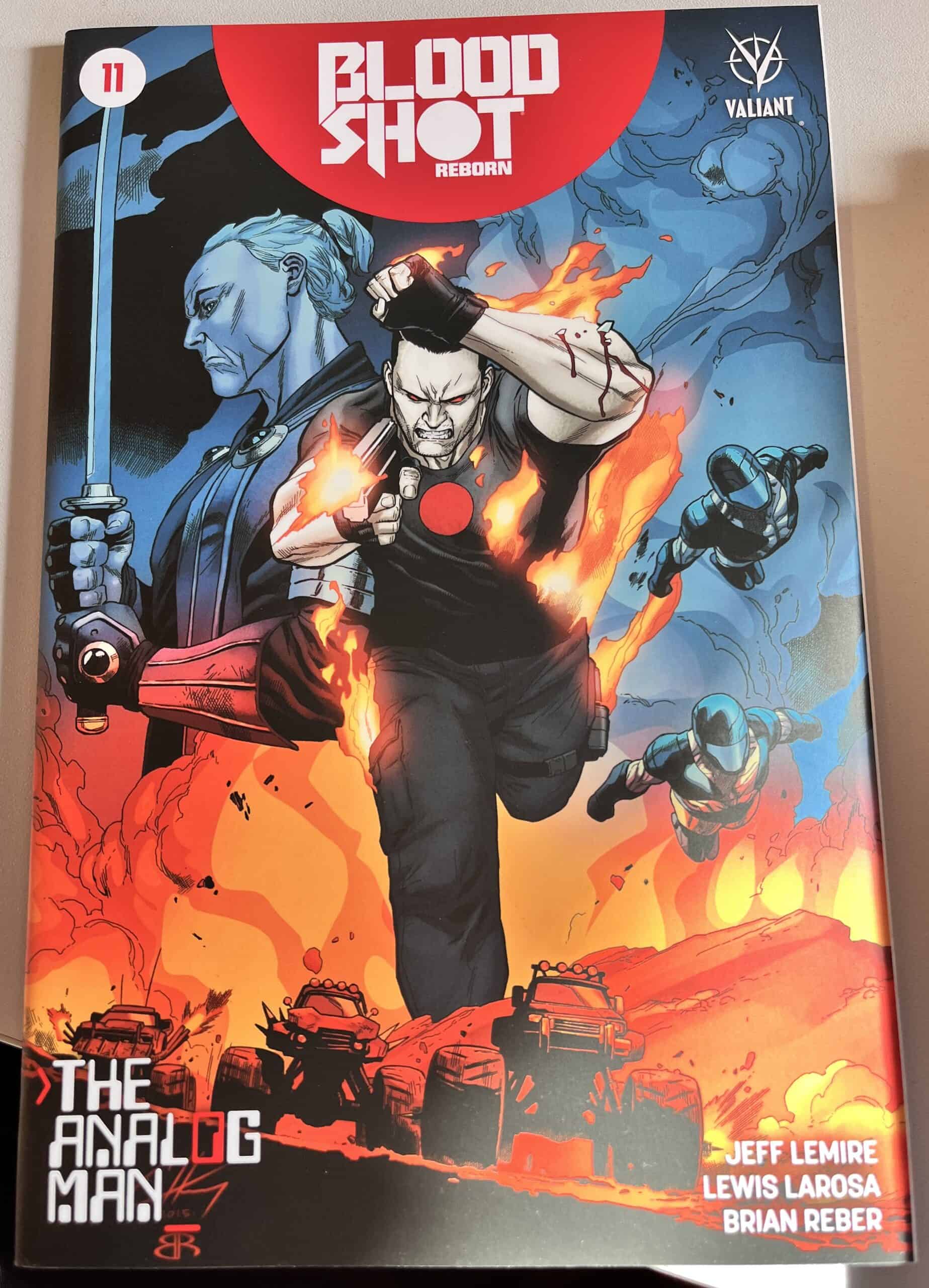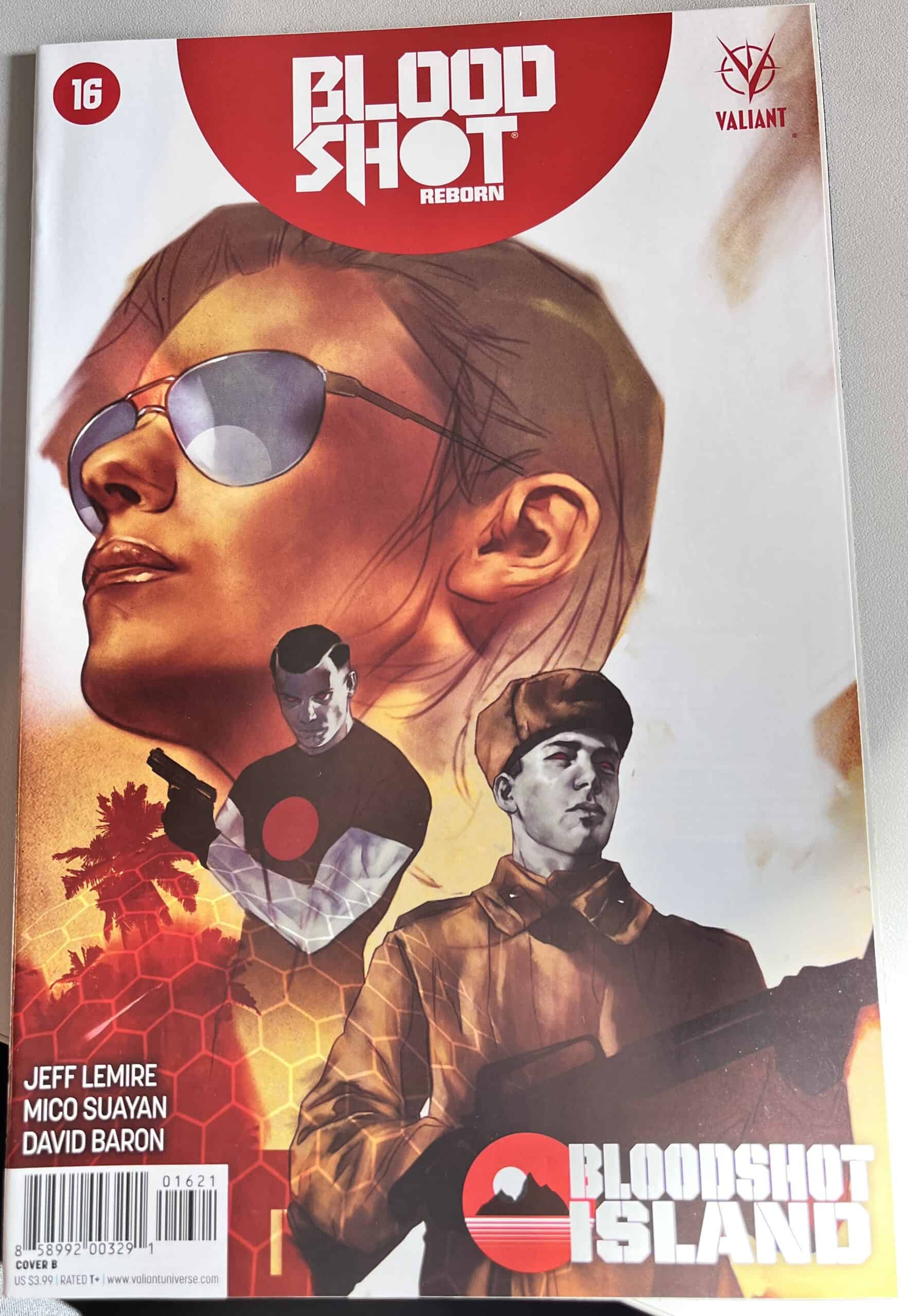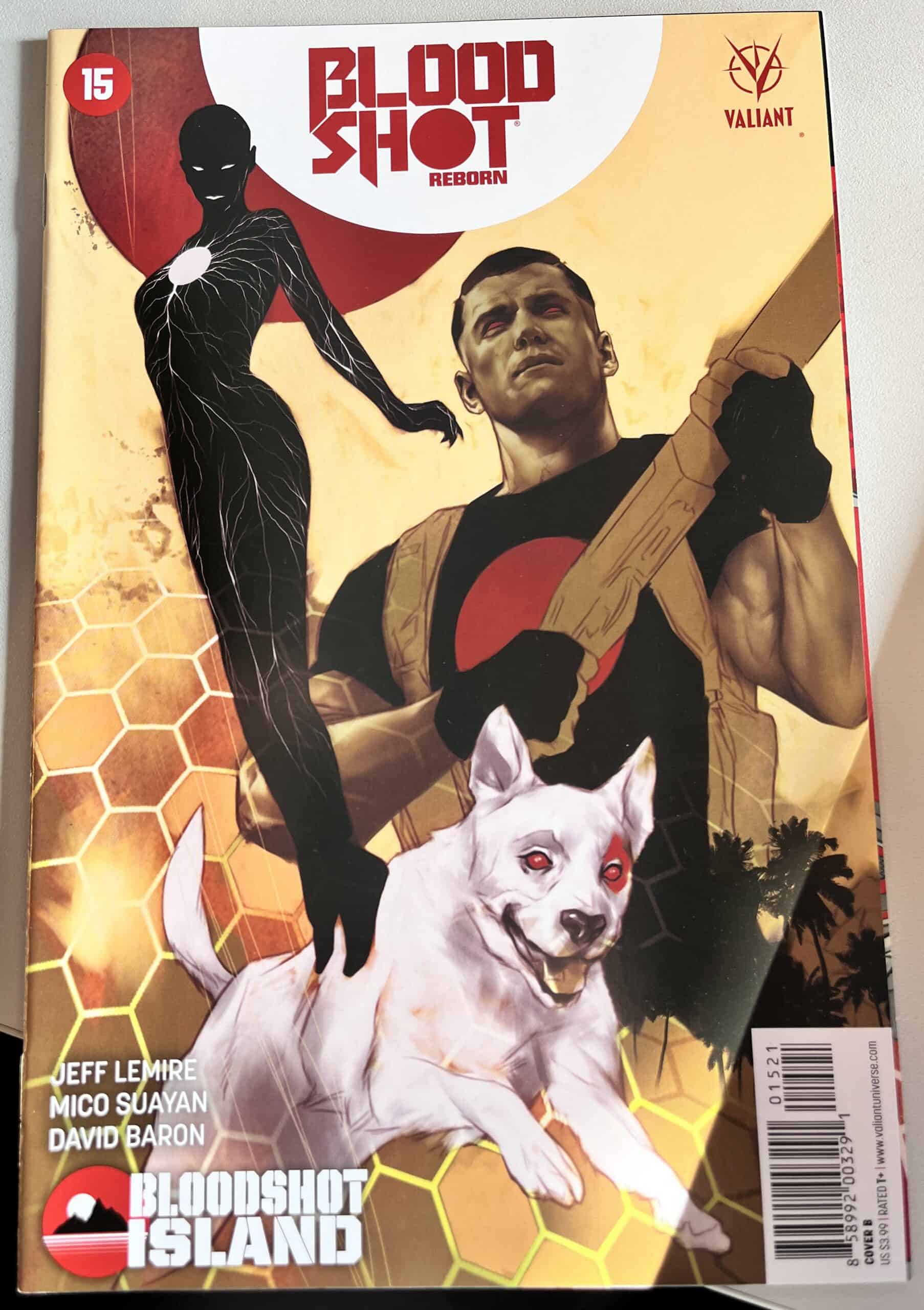 From New York Times best-selling writer Jeff Lemire (THE VALIANT, Green Arrow) and red-hot rising star Mico Suayan (HARBINGER, Moon Knight), VALIANT NEXT delivers an all-new ongoing series for Valiant’s most unrelenting hero! Bloodshot’s nanites made him a nearly unstoppable killing machine. His enhanced strength, speed, endurance, and healing made him the perfect weapon, and he served his masters at Project Rising Spirit – a private contractor trafficking in violence – very well. Now, Bloodshot is a shadow of his former self. He lives in selfimposed exile, reeling from the consequences of his past life and the recent events that nearly drove him mad. But when a rash of shootings by gunmen who appear to look just like Bloodshot begin, his guilt will send him on a mission to stop the killers, even if it means diving headlong into the violence that nearly destroyed him.