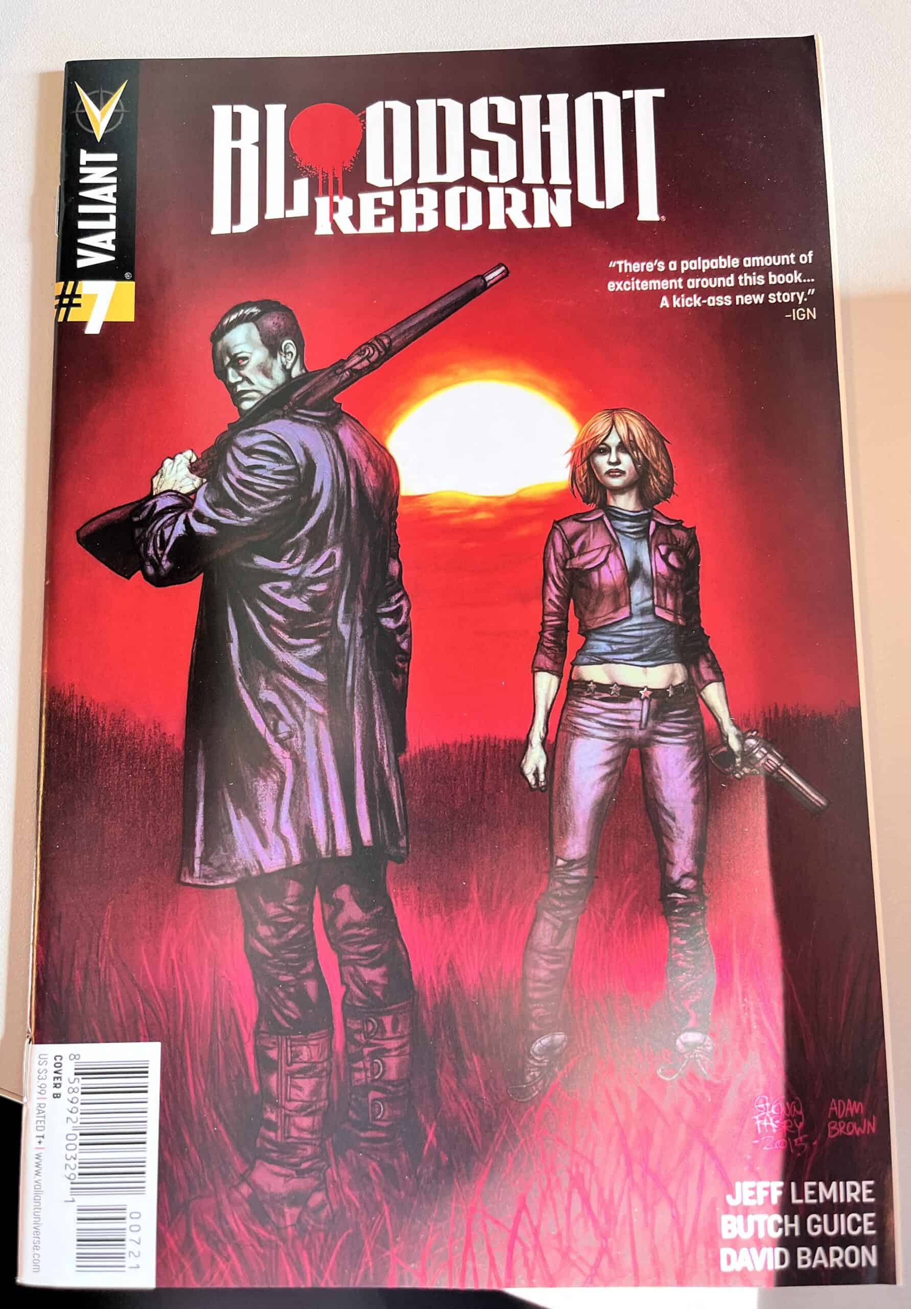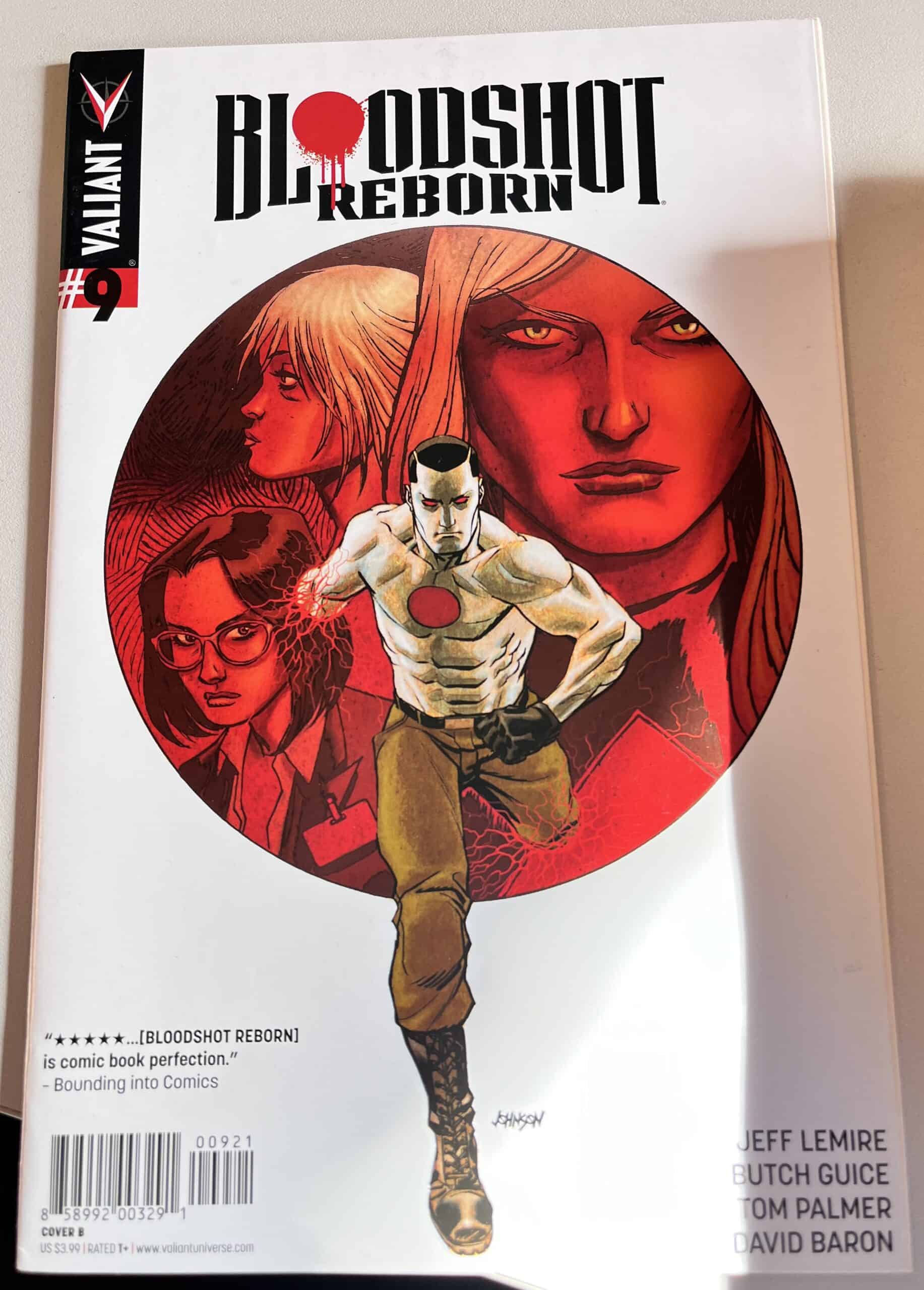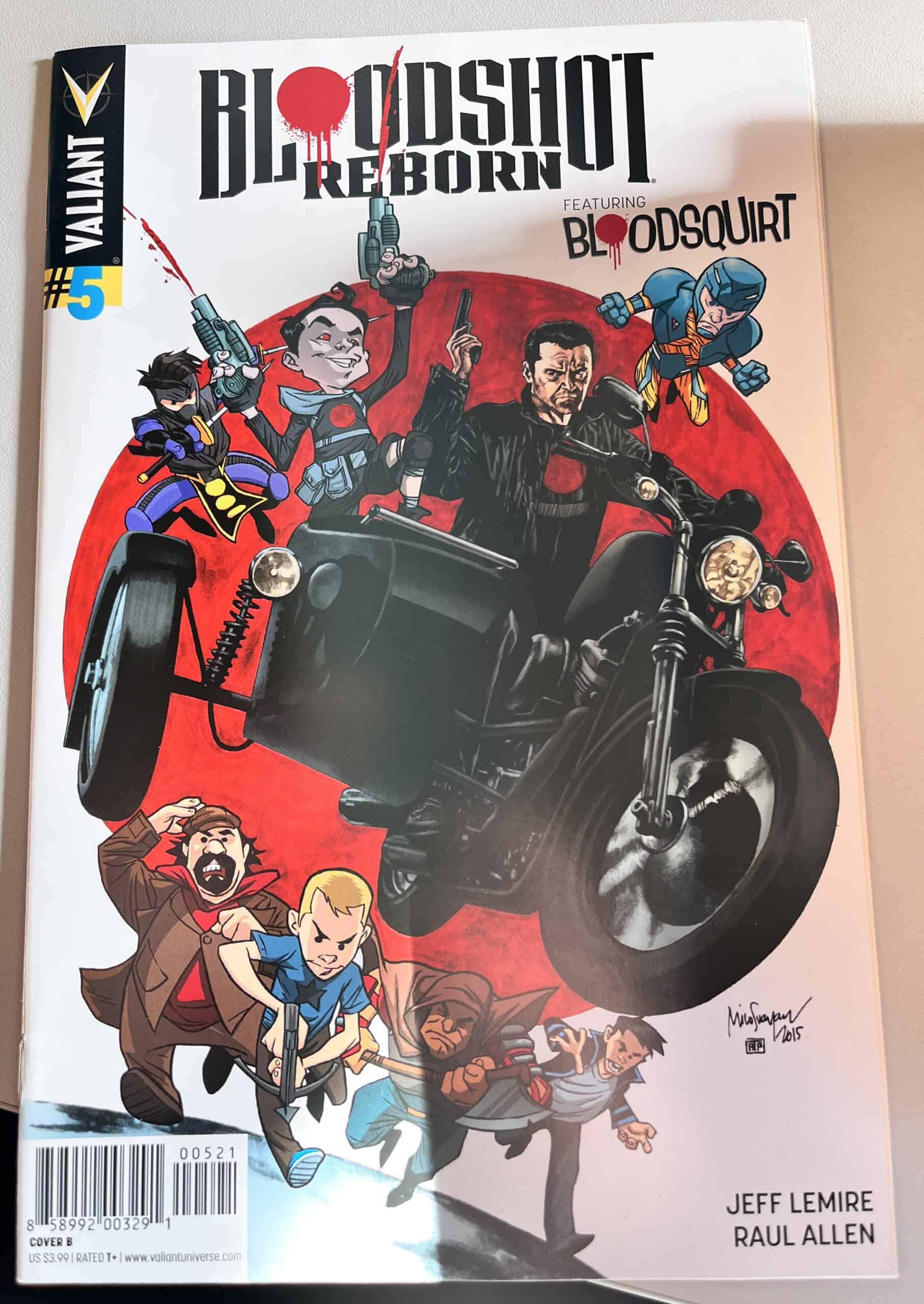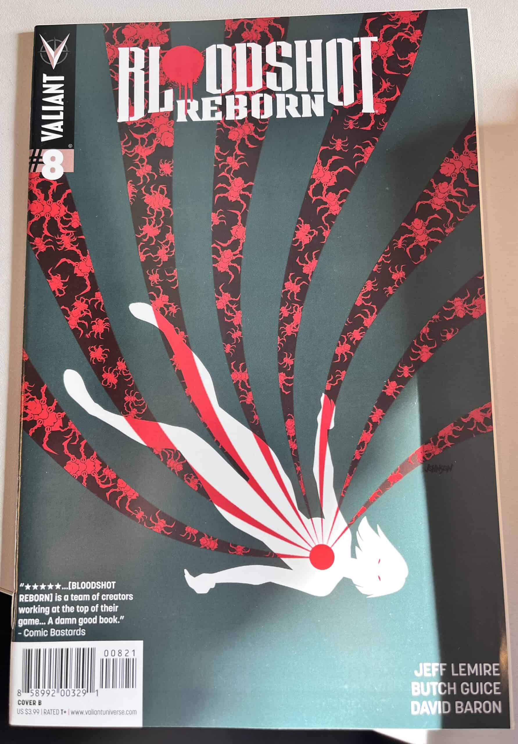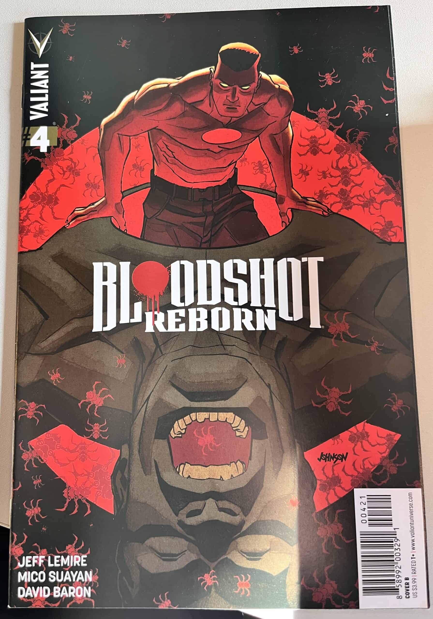 From New York Times best-selling writer Jeff Lemire (THE VALIANT, Green Arrow) and red-hot rising star Mico Suayan (HARBINGER, Moon Knight), VALIANT NEXT delivers an all-new ongoing series for Valiant’s most unrelenting hero! Bloodshot’s nanites made him a nearly unstoppable killing machine. His enhanced strength, speed, endurance, and healing made him the perfect weapon, and he served his masters at Project Rising Spirit – a private contractor trafficking in violence – very well. Now, Bloodshot is a shadow of his former self. He lives in selfimposed exile, reeling from the consequences of his past life and the recent events that nearly drove him mad. But when a rash of shootings by gunmen who appear to look just like Bloodshot begin, his guilt will send him on a mission to stop the killers, even if it means diving headlong into the violence that nearly destroyed him.