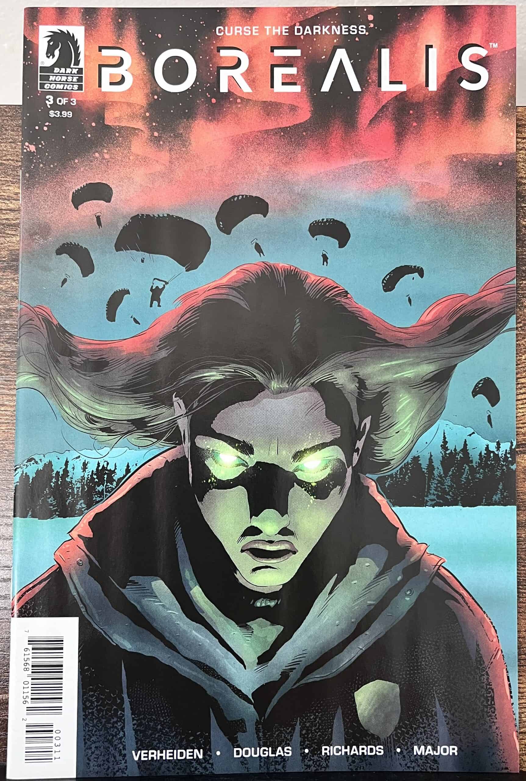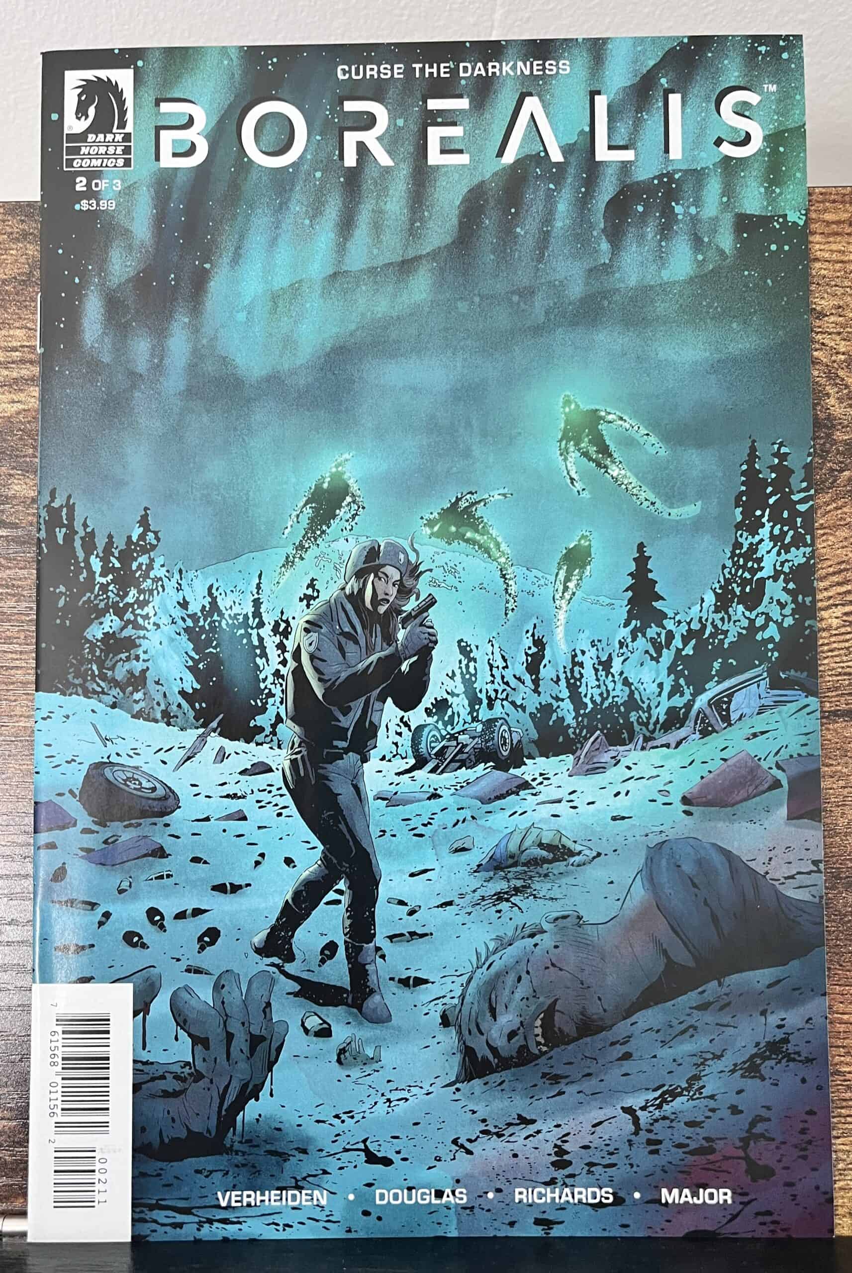 De Borealis # 1 – 3 stripboeken zijn van hoge kwaliteit, Near Mint Schrijver: Mark Verheiden & Aaron Douglas Tekenaar: Cliff Richards Jaar: 2023 Van scenarioschrijver Mark Verheiden (The Mask, Swamp Thing), schrijver/acteur Aaron Douglas (Battlestar Galactica, Hemlock Grove) en kunstenaar Cliff Richards (Buffy the Vampire Slayer, Justice League) komt Borealis, een huiveringwekkende bovennatuurlijke thriller! Tijdens de winternachten van de afgelopen maanden kon de temperatuur oplopen tot 70 graden Celsius, is alcohol illegaal… en er ontstaat iets mysterieus op het afgelegen ijs. Welkom in het geïsoleerde Qinu, Alaska en een wereld vol slechte herinneringen voor staatstrooper Silaluk ‘Sil’ Osha. Na dertien jaar weg te zijn van Qinu, wordt Sil teruggetrokken om een reeks brute moorden te onderzoeken, maar wordt geconfronteerd met een duister verleden… en haar angstaanjagende connectie met dodelijke legendes.