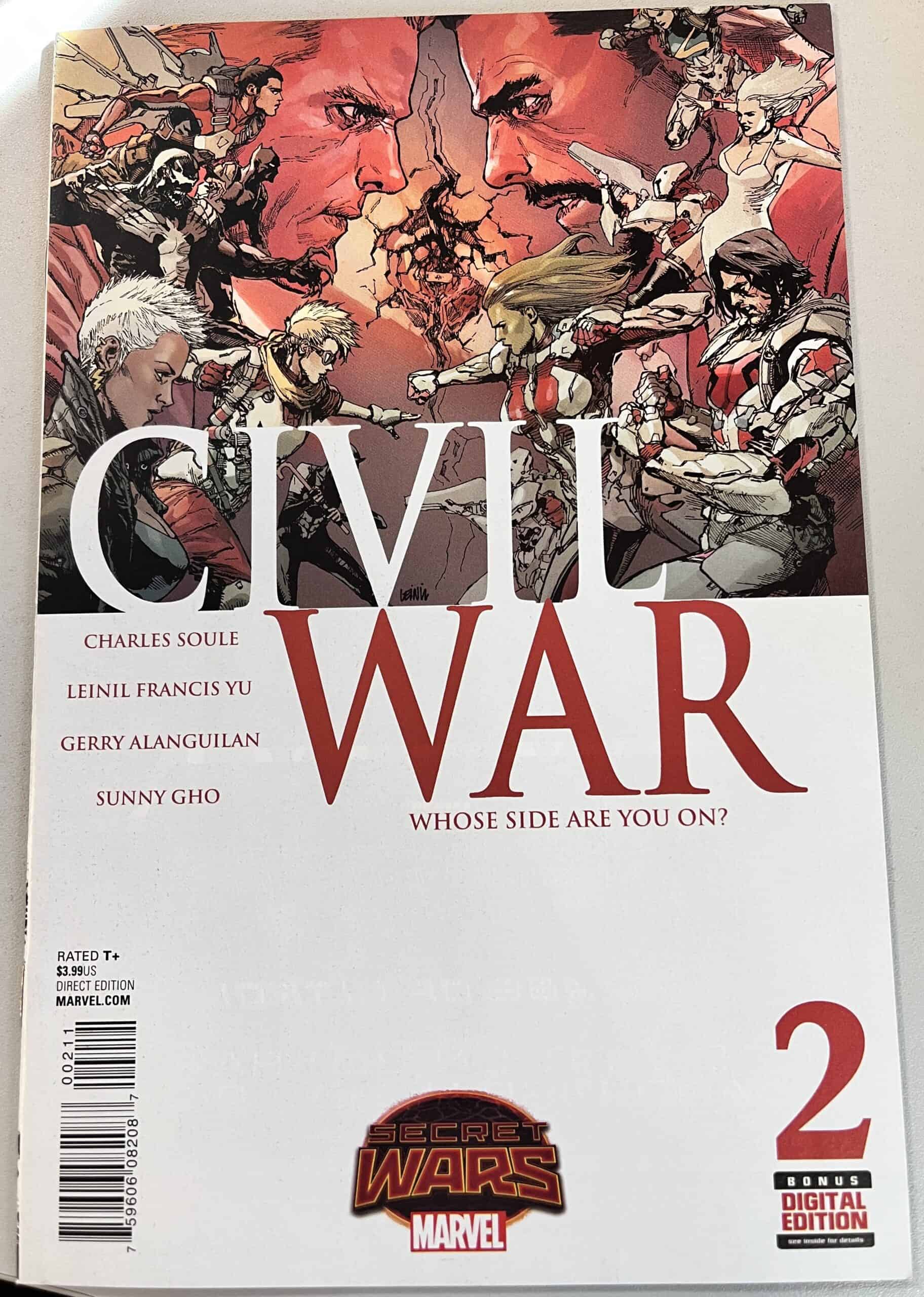 Skirmishes between each side continue in the wake of a failed attempt at peace. General Rogers and his forces in the Blue continue development of Project Bellcurve, the top-secret effort to win the war in one epic stroke, while Iron President Stark discovers deeply troubling data about the course of the nation’s history since its division. Rated T+
