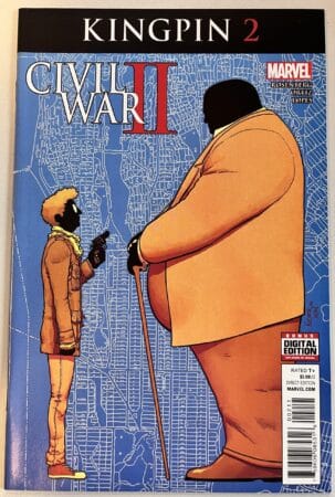 Dit Kingpin #2-stripboek uit de Burgeroorlog II is in uitstekende staat, bijna nieuwstaat Schrijver: Matthew Rosenbert Tekenaar: Ricardo Lopez Ortiz Jaar: 2016 Taal: Engels Ondanks de nieuwe, toekomstgerichte bondgenoot van de helden, behandelt de misdaadwereld Wilson Fisk ZEER goed. Zo goed zelfs dat zijn jaloerse concurrenten de mannen van de Kingpin VERMOORDEN. En tot overmaat van ramp wordt de spil van Fisks operatie – een onmens met het griezelige vermogen om incognito te blijven – ziek. Kan de Kingpin een manier vinden om zijn bedrijf draaiende te houden of is zijn tijd aan de top eindelijk voorbij? Beoordeeld T+