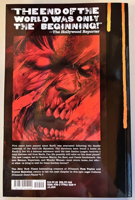 The survivors have found a home on Earth-2, but it’s a tenuous existence until the new Justice League receives a faint distress call from Earth. Can life possibly still exist on this dead planet? The new League, led by Damian Wayne, Jon Kent, and Cassie Sandsmark—the new Batman, Superman, and Wonder Woman—must return home, but who—or what—is lying in wait for these fearless heroes? Collects DCeased: Dead Planet #1-7.