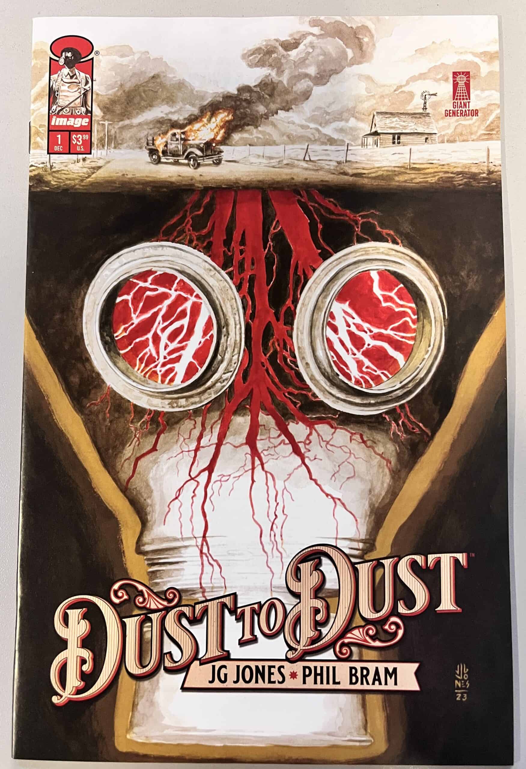 Deze Dust to Dust #1 is nieuw en ongelezen (W) JG Jones, Phil Bram (A/CA) JG Jones Een gekwelde sheriff uit Oklahoma en een sjofele fotojournalist jagen op een seriemoordenaar op het hoogtepunt van de door stof verstikte Grote Depressie. MINISERIE PREMIÈRE Comics’ all-star artiest** JG JONES** (GEZOCHT), presenteert het eerste spannende nummer van zijn nieuwe gelimiteerde serie Giant Generator. JONES, samen met co-schrijver PHIL BRAM, spint een onvergetelijk garen van wanhoop, moord en veerkracht in dit prachtig met de hand geschilderde verhaal van Americana in de oergreep van brutaliteit. In de donkerste dagen van de Grote Depressie besluipt de dood de Dust Bowl. Terwijl torenhoge stofstormen de uitgedroogde panhandle van Oklahoma vernietigen, proberen boeren de falende stad New Hope te ontvluchten, maar niemand komt ver. Sheriff Meadows vecht tegen zijn eigen demonen en werkt samen met Sarah, een reizende fotojournalist, in een wanhopig gevecht om een loslopende seriemoordenaar te stoppen: de Death that rides the Dusters.