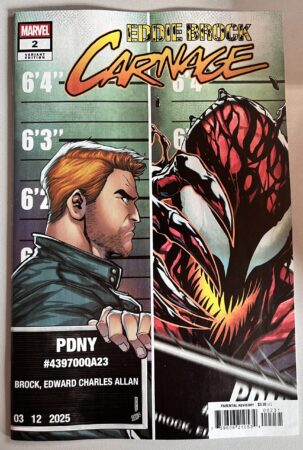 Deze Eddie Brock Carnage #2 is gloednieuw en ongelezen!! Stripverhaal door Charles Soule Geïllustreerd door Jesus Saiz Coverontwerp of artwork door David Baldeon HET RECHT OM GEWELDIG TE BLIJVEN! Wanneer Eddie Brock een politiebureau binnenloopt en vraagt om gearresteerd te worden, weet je dat er problemen gaan komen. Wanneer Eddie ook nog eens een band blijkt te hebben met Carnage? Dat wordt een bloedige nachtmerrie. De dodelijkste beschermer van allemaal zet zijn dodelijke missie voort! GECLASSEERD ALS PARENTAL ADVISORY. Releasedatum: 19 maart 2025