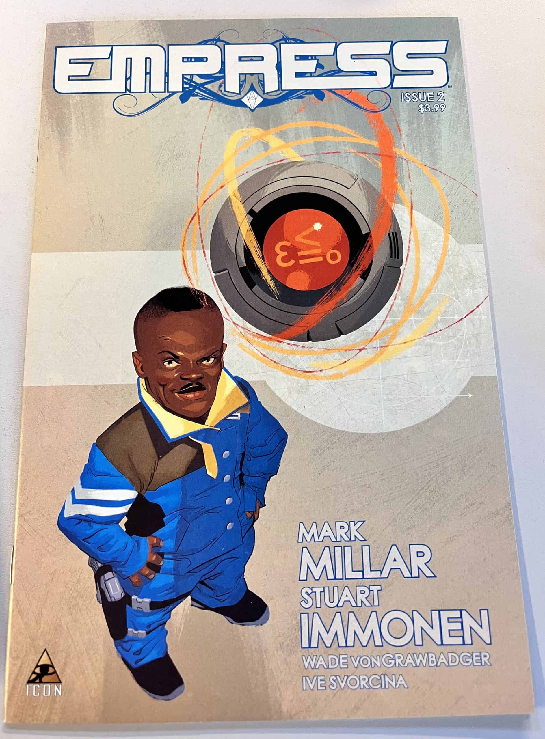 Queen Emporia is on the run from her husband, along with her kids and bodyguard. Now all they have to do is get across the galaxy while the world's most ruthless dictator has all his forces in hot pursuit. Easy, right? A plea for help on an alien stopover world plus a broken transporter could end their adventure before it's begun! The stakes get even higher in the latest from superstar creators Millar and Immonen! RATED T+