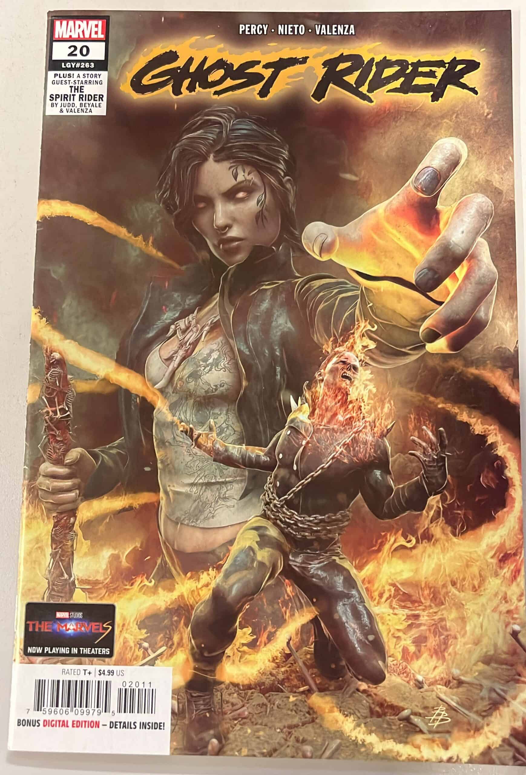 On the trail of the Cult of Mephisto, Talia Warroad and Johnny Blaze discover a town emptied of adults. What happened, what will become of the children left behind and how does it connect to Talia’s own childhood? He may not be the nurturing type, but these children’s only hope is the Ghost Rider! Plus: A backup story featuring Ghost Rider and Kushala, the Spirit Rider! Rated T+