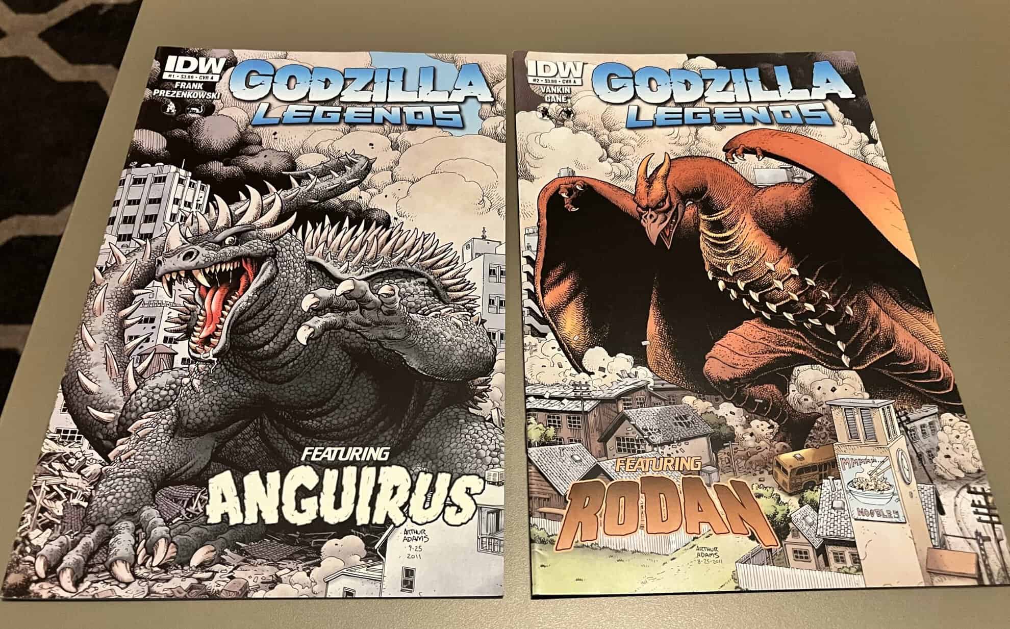 Matt Frank & Jeff Prezenkowski (w) o Matt Frank (a) o Frank, Art Adams (c) The Legends begin here! Presenting the first of five spotlight issues, each of which explore a self-contained story centering on one of Godzilla’s fearsome foes! In this tale, drawn and co-written by Godzilla superstar artist Matt Frank, Anguirus, the armadillo-esque perpetual underdog, goes toe-to-toe with one of the most devastating monsters of all time-Destroyah! It’s a classic tale of David vs. Goliath… monster style!