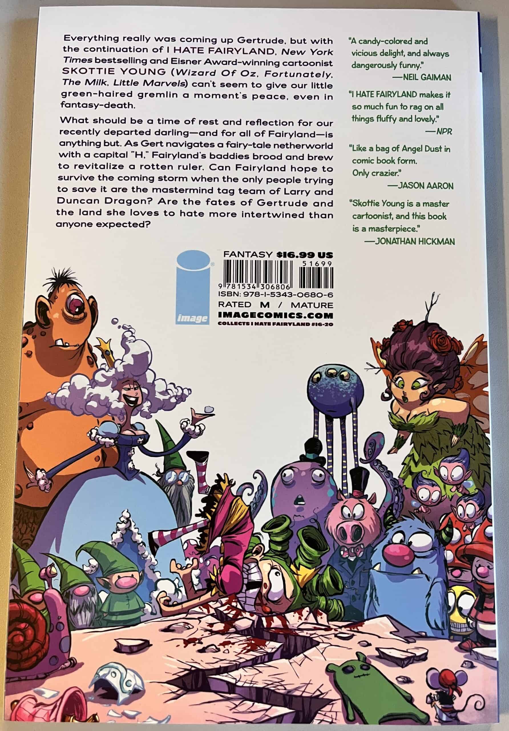 What started as a normal, everyday, child-sucked-into-a-magical-land-to-fulfill-an-inane-quest has changed Fairyland forever. In the continuation of SKOTTIE YOUNG’S saccharine fantasy-satire, Gertrude hands over the spotlight to Larry, Duncan Dragon, and some of Fairyland’s other supporting cast, misfits, and forgotten threats.