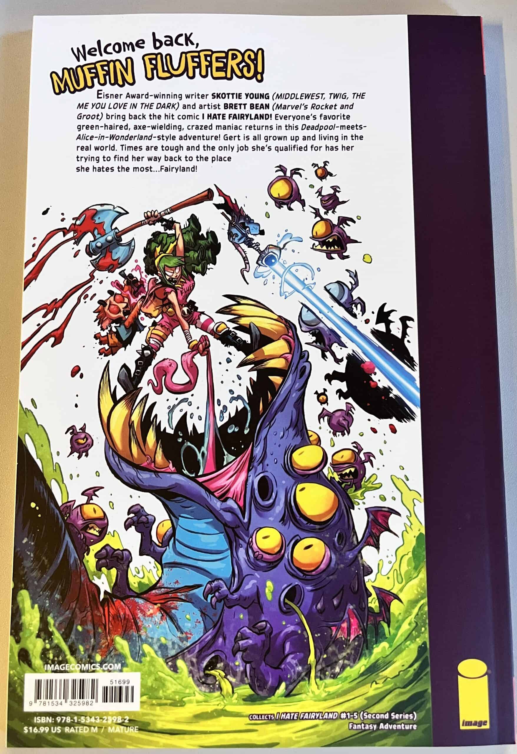 Eisner Award-winning writer SKOTTIE YOUNG (MIDDLEWEST, TWIG, THE ME YOU LOVE IN THE DARK) and artist BRETT BEAN (Marvel’s Rocket and Groot) bring back the hit comic I HATE FAIRYLAND! Everyone’s favorite green-haired, axe-wielding, crazed maniac returns in this Deadpool-meets-Alice-in-Wonderland-style adventure! Gert is all grown up and living in the real world. Times are tough, and the only job she’s qualified for has her trying to find her way back to the place she hates the most?Fairyland.