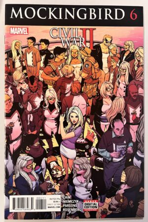 Dit stripboek Mockingbird #6 is in uitstekende staat, bijna nieuwstaat Schrijver: Chelsea Cain Tekenaar: Kate Niemczyk Jaar: 2016 Taal: Engels BURGEROORLOG II TIE-IN! Een uiterst geheime missie namens een oude vriend, een tropische cruise. Wat kan er misgaan? Blijkt dat het een themacruise is – uiteraard met een superheldenthema – een zwevende komische oplichterij. Nu zit Bobbi vast op een boot met duizend cosplayers, collega’s met cape die ze probeerde te ontwijken, een ex-vriend die steeds op ongelegen momenten komt opdagen en een razende kudde corgi’s. Wanneer een passagier wordt vermoord, moet Bobbi Hercule Poirot spelen om de moordenaar te vinden en daarbij enkele ongemakkelijke waarheden uit haar verleden onder ogen te zien. Beoordeeld T+