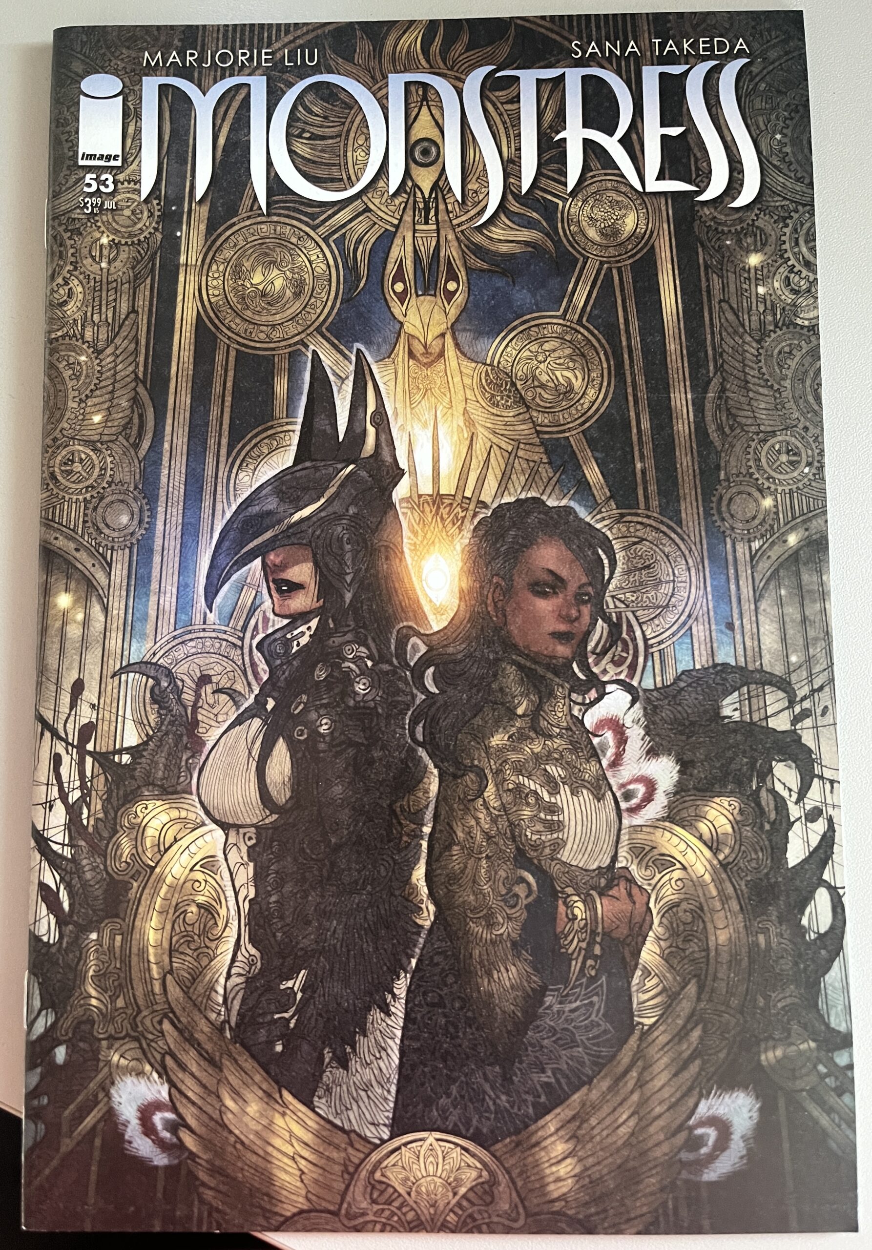 Deze Monstress #53 strip is in uitstekende staat, bijna nieuw. Schrijver: Marjorie Liu Tekenaar: Sana Takeda Jaar: 2024 Taal: Engels Genre: Fantasy, Volwassen Naarmate de pijn van hun scheiding toeneemt, begint Maika zich af te vragen of ze ooit weer bij Zinn zal zijn – en of een verbond met haar megalomane vader haar enige kans is om haar geliefden te redden.
