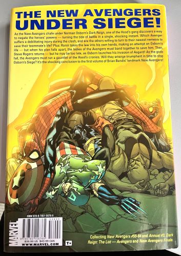 Deze New Avengers volume 7 Hardcover is gloednieuw en ongelezen!! Comic Script door Brian Michael Bendis Geïllustreerd door Stuart Immonen, Marko Djurdjevic, Mike Mayhew, Bryan Hitch Terwijl de New Avengers zich ergeren aan Norman Osborn's Dark Reign, ontdekt een van de Hood's bende een manier om de krachten van de helden te ontkennen - en keert het tij van de strijd in een enkel schokkend moment. Welke Avenger loopt een slopende blessure op tijdens het gevecht, en zijn de anderen bereid om zich tot hun nieuwste aartsvijand te wenden om het leven van hun teamgenoot te redden? Dan is Steve Rogers terug - maar hij is misschien te laat, want Osborn lanceert zijn invasie van Asgard! Terwijl de goden vallen, moeten de Avengers een handschoen oppakken van de handlangers van de Hood. Zullen ze op tijd triomfantelijk tevoorschijn komen om Osborn's belegering te stoppen? Verzamel New Avengers # 55-64 plus Annual # 3; Dark Reign: The List en New Avengers: The Finale