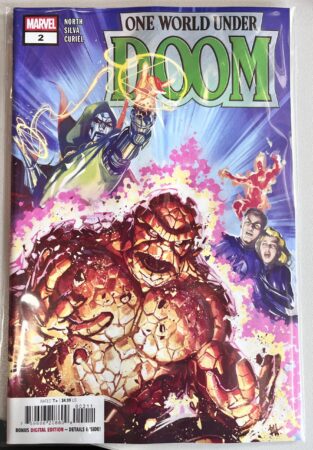 Deze One world under Doom #2 is gloednieuw en ongelezen!! Comic Script door Ryan North Geïllustreerd door R.B. Silva Coverontwerp of artwork door Ben Harvey Doctor Doom heeft de wereld overgenomen en de machtigste helden van de aarde hebben twee keer gefaald: eerst om hem te stoppen en nu om hem omver te werpen. Maar de Fantastic Four kennen Doom beter dan wie dan ook, wat hen bij uitstek geschikt maakt om het op te nemen tegen de nieuwe keizer van de aarde... behalve dat hij HEN net zo goed kent. Terwijl Reed Richards, Ben Grimm en Sue en Johnny Storm zich voorbereiden om Doom bij de Verenigde Naties te confronteren, brengt Doom een geheim bezoek om te praten met de enige persoon op aarde die zowel zijn gunst, zijn respect... als zijn liefde heeft. Maar kan Valeria Richards de mening van haar oom veranderen? En als ze faalt, wat zal Doom ervan weerhouden om een schokkend lot te brengen aan de Fantastic Four dat zelfs hij niet ongedaan kan maken? En terwijl de Avengers wankelen van hun verliezen, zal de koers van het Marvel Universum veranderen - en Marvel's First Family zal niet meer hetzelfde zijn! Releasedatum: 19 maart 2025