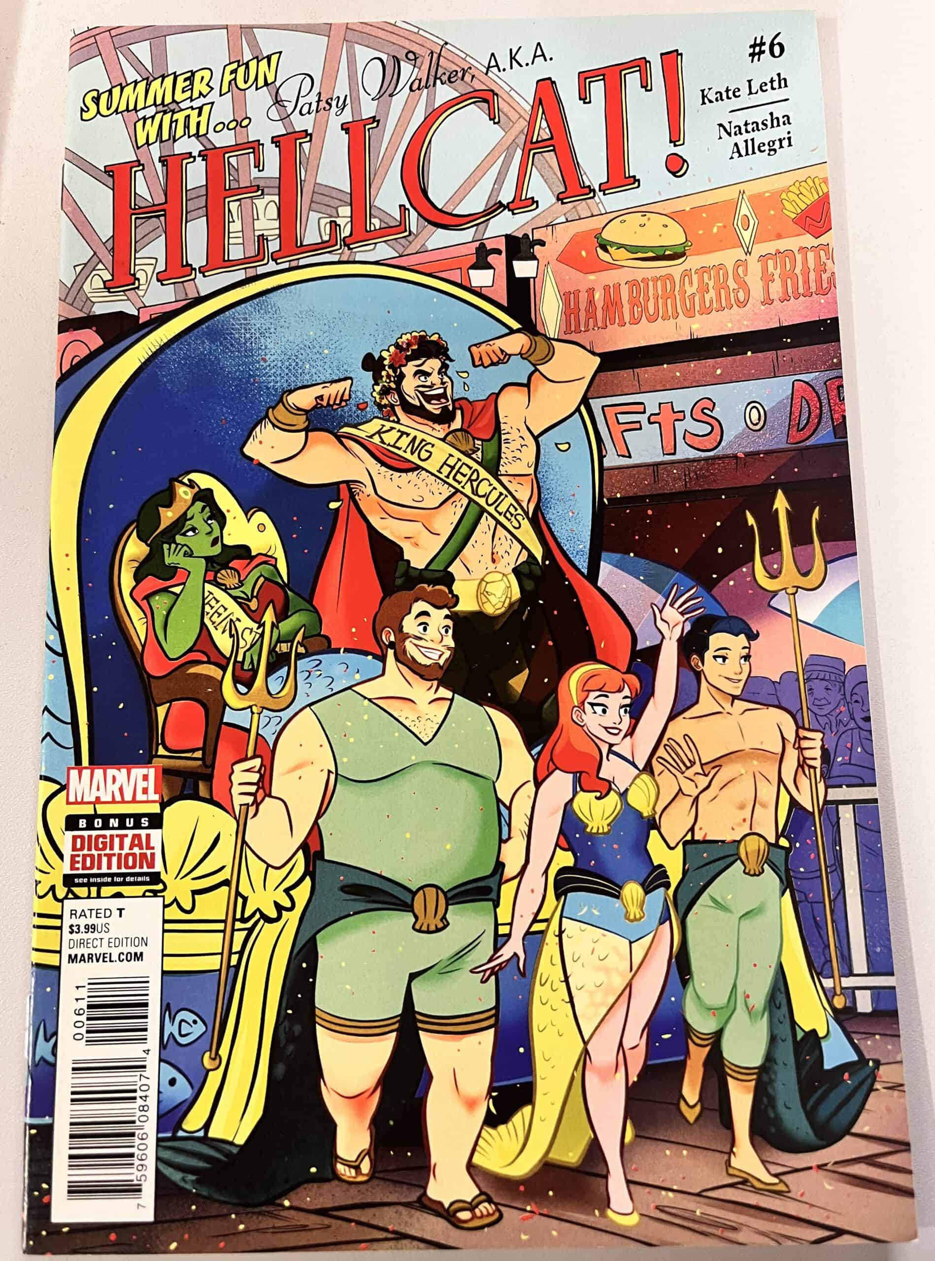 In this very special issue #6 of Patsy Walker, AKA HELLCAT, will she: A) Visit CONEY ISLAND with her cool and stylish pals B) Get into an adventure involving rollercoasters, or C) Kick a whole mess of butts? (Answer: All of the above!) Rated T