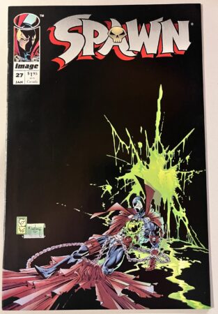 Deze Spawn #27 strip is in uitstekende staat, zeer goed/bijna nieuw. Verhaal: Todd McFarlane Tekenaar: Todd McFarlane & Greg Capullo Jaar: 1995 Legenda: Eerste verschijning van De Vloek