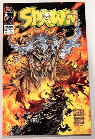 Deze Spawn #53 strip is in uitstekende staat, zeer goed/bijna nieuw. Verhaal: Todd McFarlane Tekenaar: Greg Capullo Jaar: 1996 Spawn krijgt ruzie met Malebolgia in de hel. Terwijl hij belooft Wanda met rust te laten, hernieuwt Spawn zijn dienst aan Malebolgia. Spawn keert terug naar de aarde om meer zielen te verzamelen voor zijn baas. Hij ontwaakt uit een droom die hem vertelt dat Spawn zijn oude vriend Al Simmons is.