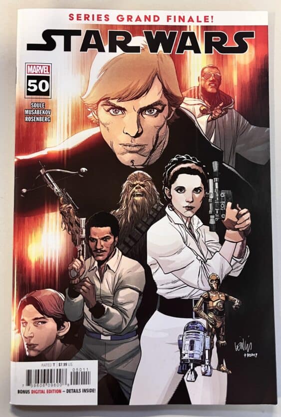 Deze Star Wars #50 is gloednieuw en ongelezen!! Komisch script van Charles Soule Geïllustreerd door Madibek Musabekov Omslagontwerp of artwork door Leinil Yu REUZE GROOTTE STAR WARS EPIC! Een spektakel van vijftig pagina's! JEDI-MEESTER LUKE SKYWALKER moet zijn leerling BEN SOLO een krachtige les leren over de ware balans tussen LICHT en DONKER. Hij biedt een verhaal aan uit de dagen van de REBEL ALLIANCE dat raakt aan ALLE TIJDPERKEN UIT DE GESCHIEDENIS VAN STAR WARS, en brengt deze epische run tot een spannend, ongelooflijk einde!