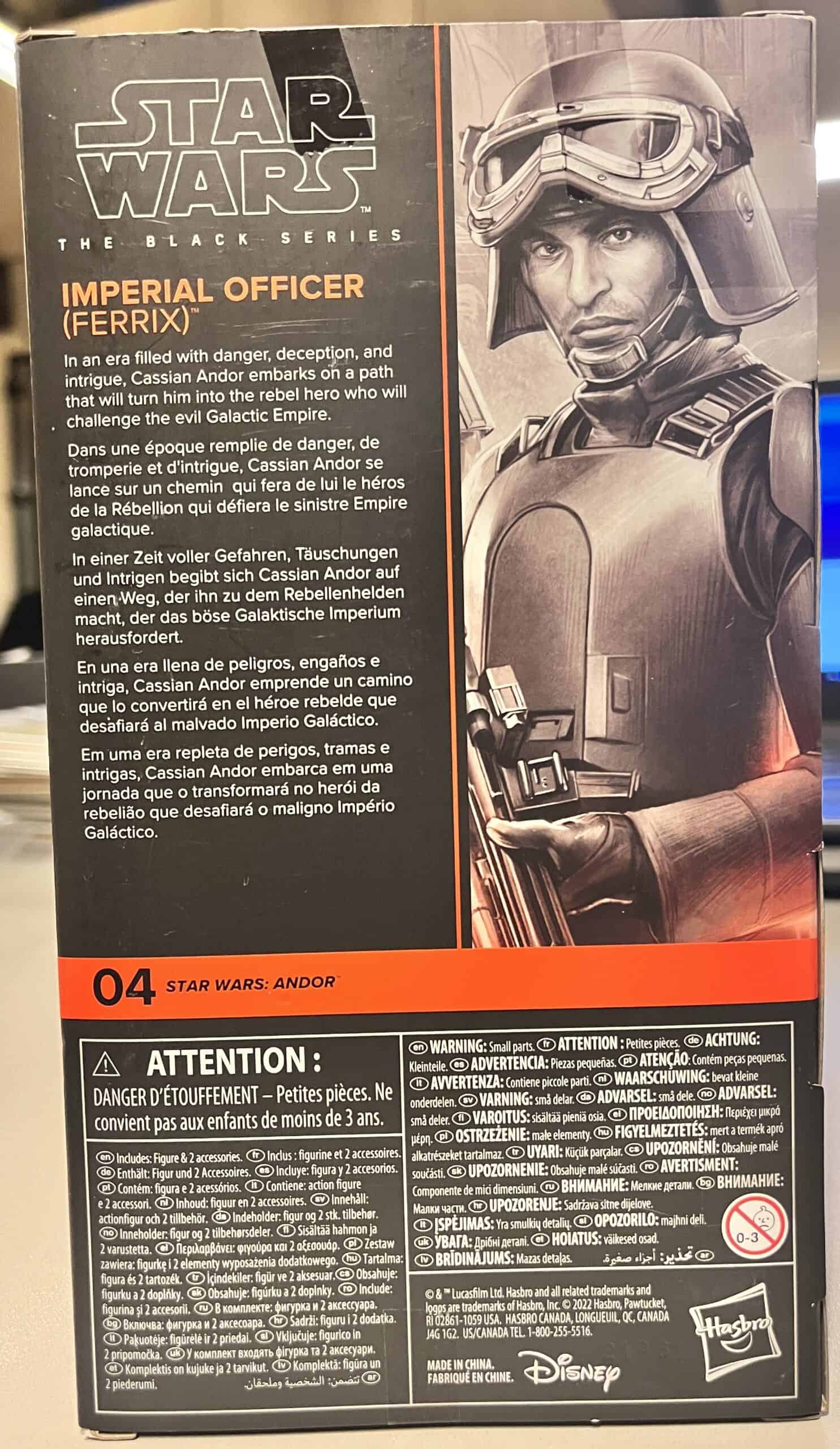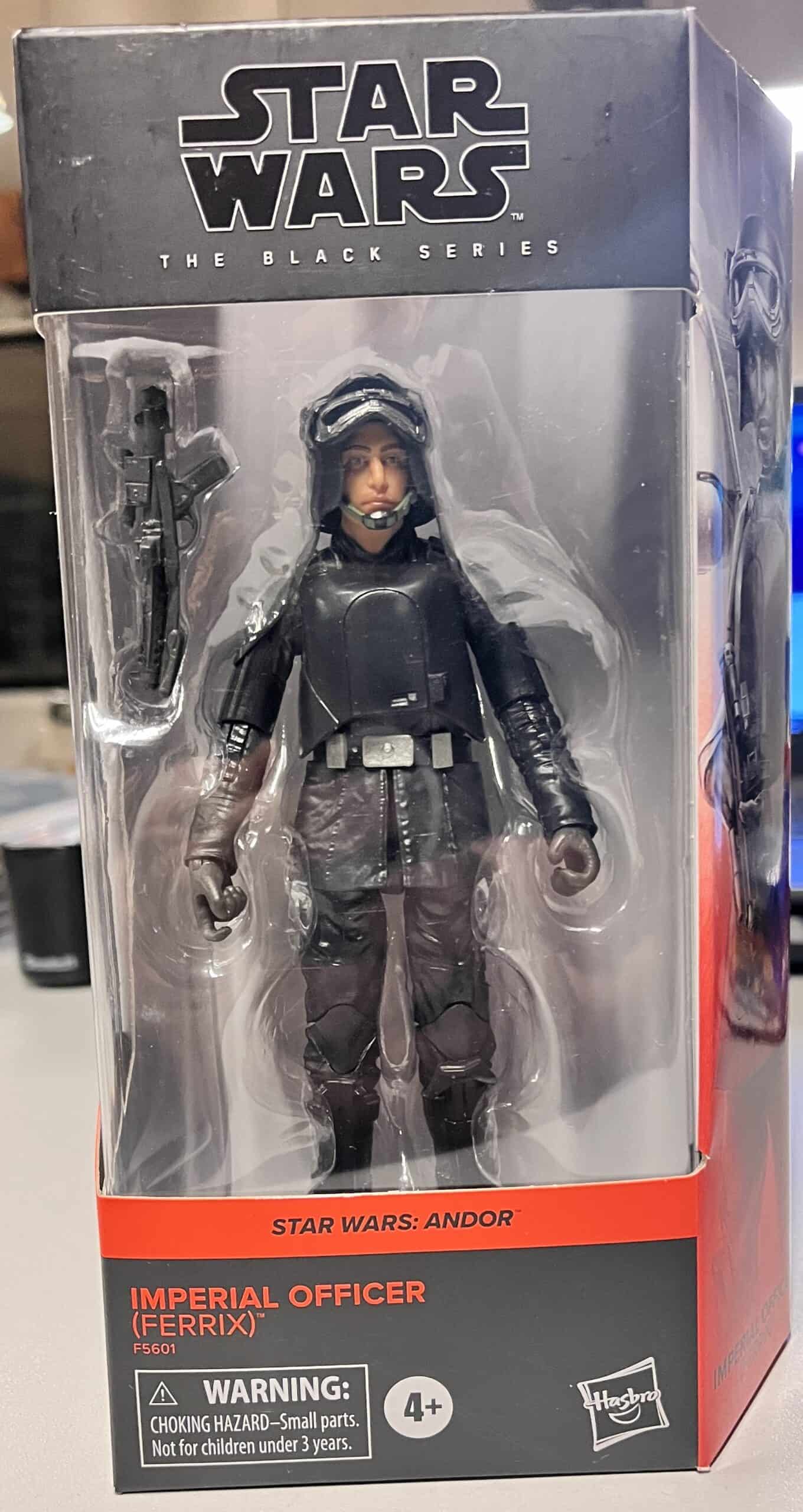 The 6-inch-scale Black Series figure is detailed to look like the Imperial Officer (Ferrix) character from Star Wars: Andor, featuring premium detail and multiple points of articulation.