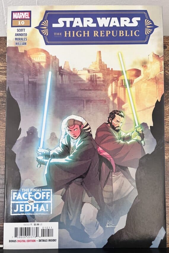 Deze Star Wars the High Republic vol. 2 # 1 – 10 complete set is in uitstekende staat, bijna nieuwstaat Schrijver: Cavan Scott Tekenaar: Ario Anindito Jaar: 2022 EEN NIEUW HOOFDSTUK BEGINT VOOR STAR WARS: DE HOGE REPUBLIEK! Honderdvijftig jaar vóór de val van Starlight brandt er een ander baken helder in de Melkweg, een baken van geloof en spiritualiteit. Jedha. De Pelgrim Maan. Het Kyber-hart. Maar de spanningen in de heilige stad lopen op en er komen donkere dagen. Jedi Vildar Mac, een Jedi die veilig is in wie hij is en wat hij zou kunnen zijn, arriveert terwijl Jedha’s kwetsbare vrede begint af te brokkelen. Maar er wacht een nachtmerrie… een naamloze terreur die legendarisch zal worden.