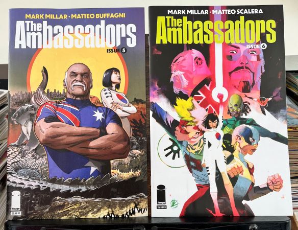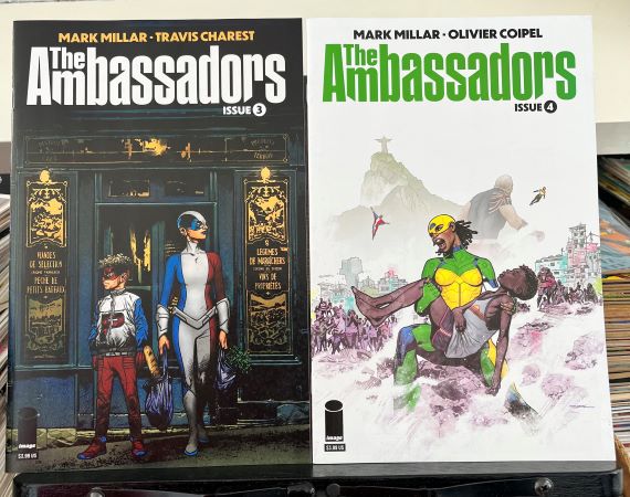 Deze complete set van The Ambassadors #1 t/m 6 is van hoge kwaliteit. Bijna nieuw. Schrijver: Mark Millar Tekenaar: Frank Quitely, Mattea Scalera Jaar: 2023 De meest ambitieuze strip aller tijden is er eindelijk! Stel je voor dat je superkrachten aan zes mensen zou kunnen schenken. In een wereld van acht miljard mensen, wie kies je dan? Ga mee met zes van de grootste tekenaars uit de industrie voor een enorm verhaal over gewone mensen van over de hele wereld, waarin wordt uitgelegd waarom zij het zouden moeten zijn. Dit eerste verhaal is getekend door superster FRANK QUITELY.