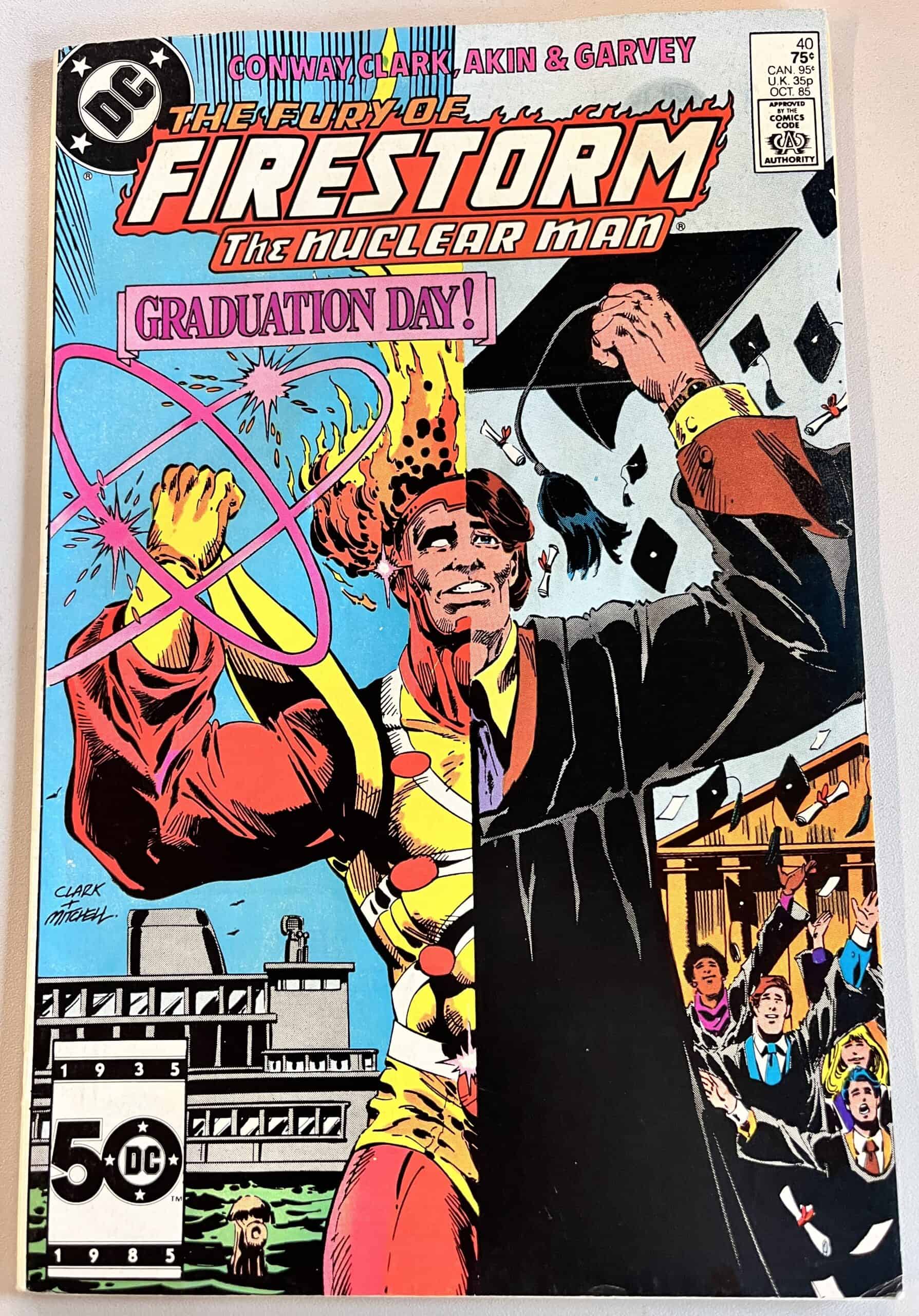 The Fury of Firestorm, the Nuclear Man was published from 1982–1990 comprising a total of one-hundred issues and five Annuals. With issue number 50, the cover title of the series changed to Firestorm, the Nuclear Man, the same title that the first, short-lived series carried.