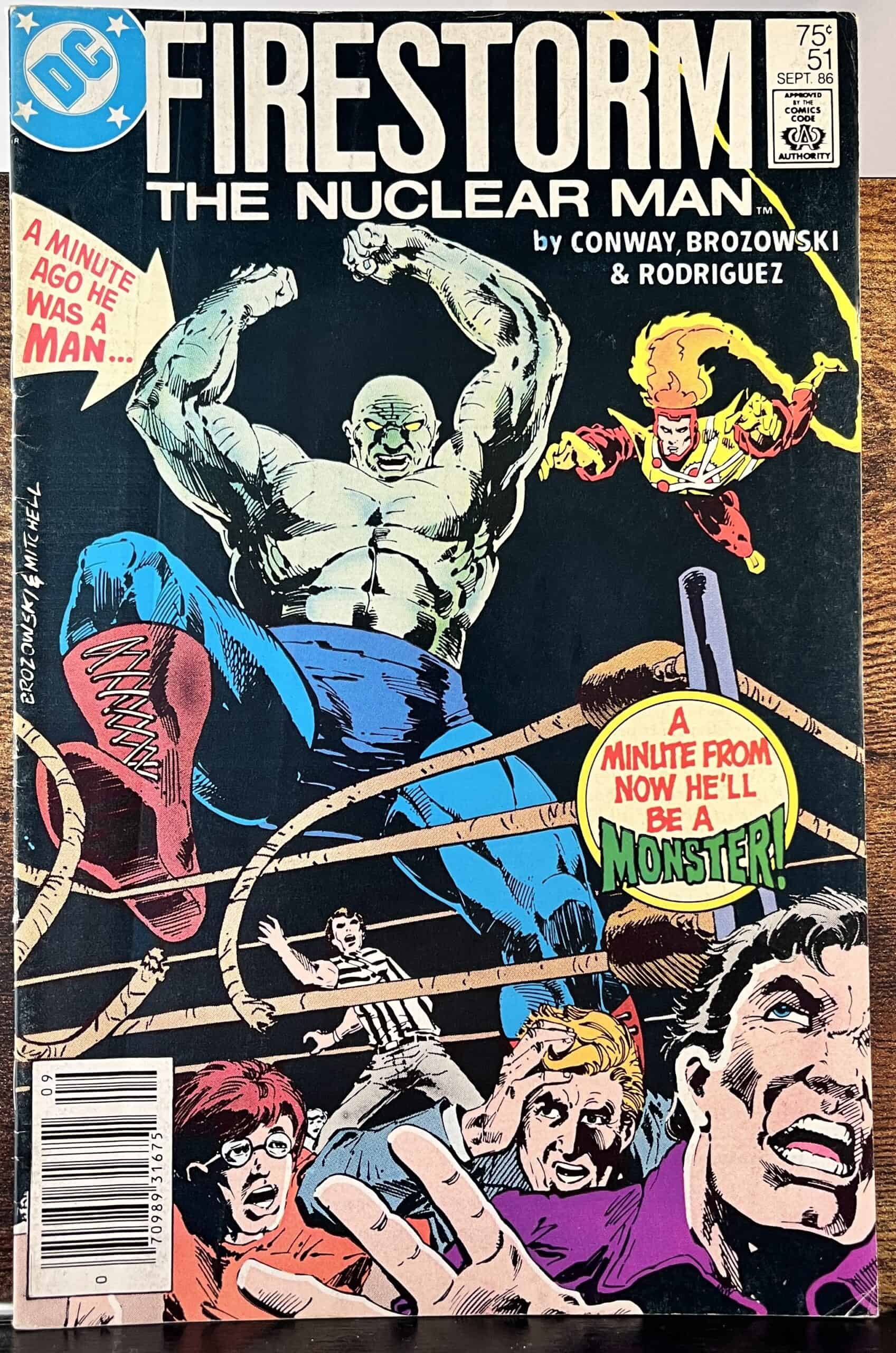 The Fury of Firestorm, the Nuclear Man was published from 1982–1990 comprising a total of one-hundred issues and five Annuals. With issue number 50, the cover title of the series changed to Firestorm, the Nuclear Man, the same title that the first, short-lived series carried.