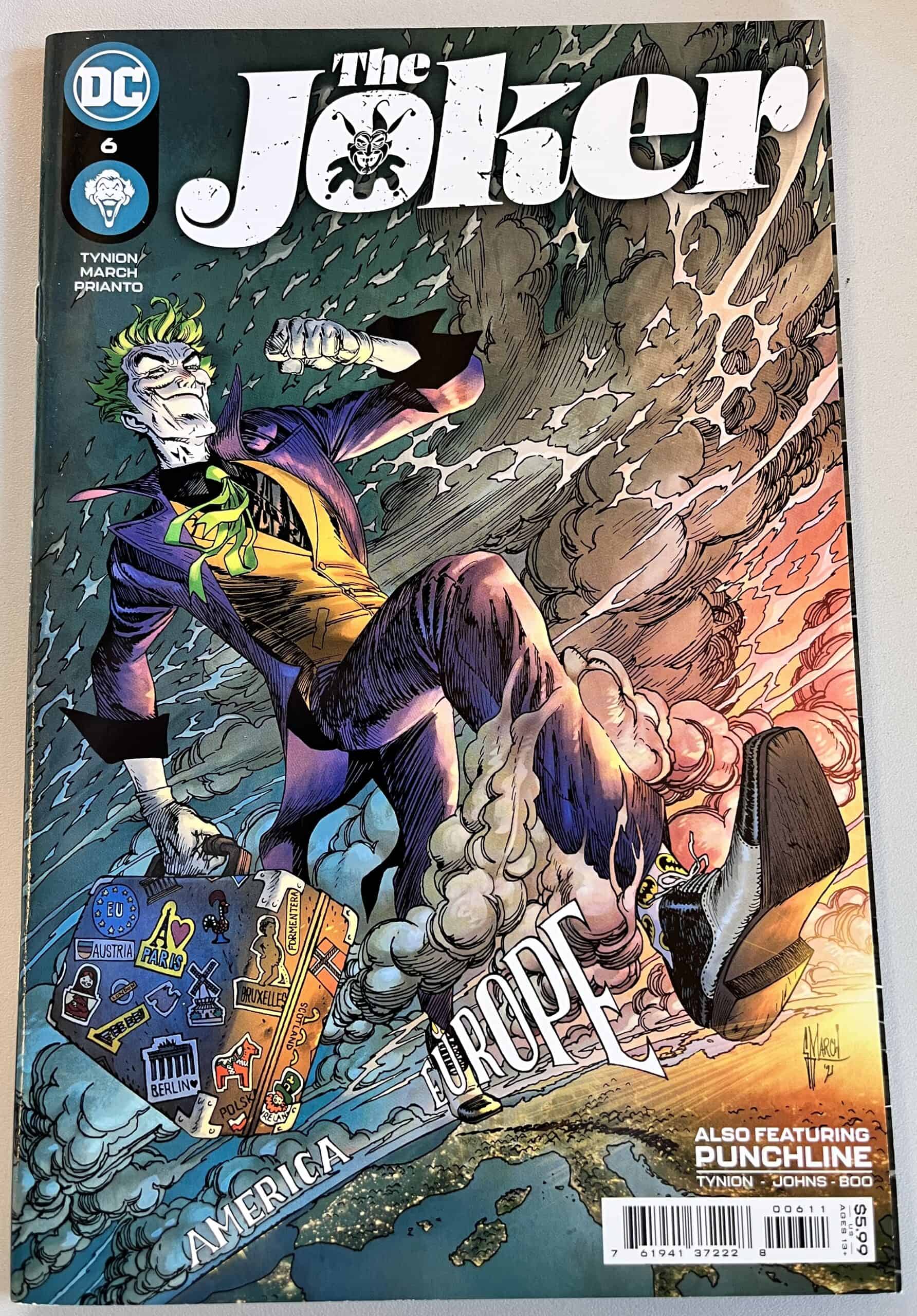 After barely surviving in the jungles of Belize, The Joker flees to Europe! Jim Gordon pursues the madman, but the seeds of doubt begin to sprout…if The Joker didn’t gas Arkham Asylum, who did? And what’s the next move for Vengeance, daughter of Bane? Backup: Punchline’s takeover of Blackgate Penitentiary continues as her most insidious goal becomes clear: find a woman she used to call her friend in her college days and make her pay for her betrayal. On the outside, Harper Row tries to pull her brother, Cullen, back from the brink of Jokerized radicalization!
