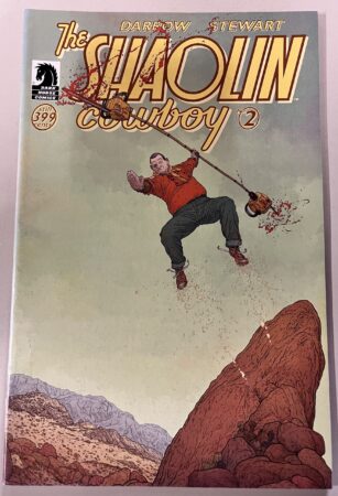 Dit complete stripboek van The Shaolin Cowboy # 1 – 4 is in zeer goede staat, prima/zeer goed Schrijver: Geof Darrow Tekenaar: Geof Darrow Jaar: 2013 Taal: Engels De Shaolin Cowboy keert terug, maar nergens is een dode Robin te bekennen, geen oneindigheidshandschoenen of een enkele overwinnende Ultron – alleen maar regelrechte actie, intriges en veel roadkill. De langzaam pratende, kungfu-aangrijpende held van Geof Darrow bewijst in deze gloednieuwe nieuwe serie opnieuw dat het enige dat een slechterik met een pistool kan tegenhouden, een goede kerel met een kettingzaag is!