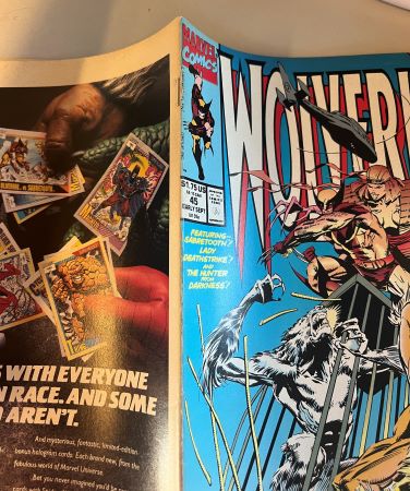 Deze Wolverine #45 verkeert in zeer goede staat, hoge kwaliteit, Fraai/Zeer Fraai (7.0-7.5). Stripscript door Larry Hama Geïllustreerd door Marc Silvestri Omslagontwerp of artwork door Marc Silvestri Ronald Parvenue stelt de gevangengenomen Hunter in Darkness tentoon in New York, wat Wolverine, Sabretooth en Lady Deathstrike met elkaar in conflict brengt. Wanneer Albert de stadsmacht omleidt om Elsie Dee te helpen, gaan de lichten uit en wordt de Hunter in de verwarring bevrijd uit zijn gevangenschap. Uitgavedatum: 1 september 1991
