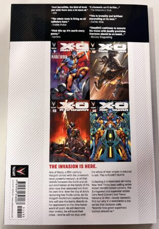 The invasion is here – and X-O Manowar is the invader! From superstar creators Robert Venditti, Cary Nord and Trevor Hairsine, jump on board the one of the year’s most ambitious series as X-O Manowar ignites an interstellar war and changes the landscape of the Valiant Universe forever! Aric of Dacia, a fifth century Visigoth armed with the universe’s most powerful weapon, is all that stands between the Earth and all-out annihilation at the hands of the alien race that abducted him from his own time. Now, the day of Aric’s reckoning has finally come. As his Visigoth forefathers sacked Rome, Aric will take the battle directly to his oppressors on the Vine homeworld of Loam. He will decimate their armies, he will level their cities – and he will not stop until the whole of their empire is reduced to ash. This is PLANET DEATH! Collecting the complete PLANET DEATH saga from X-O MANOWAR #9-14 by New York Times best-selling writer Robert Venditti (Green Lantern, The Surrogates) and superstar artists Cary Nord (Conan) and Trevor Hairsine (X-Men: Deadly Genesis), start reading here to find out why X-O Manowar’s one-man revenge mission has IGN declaring, ‘X-O Manowar still kicks butt. Bring on Planet Death.’